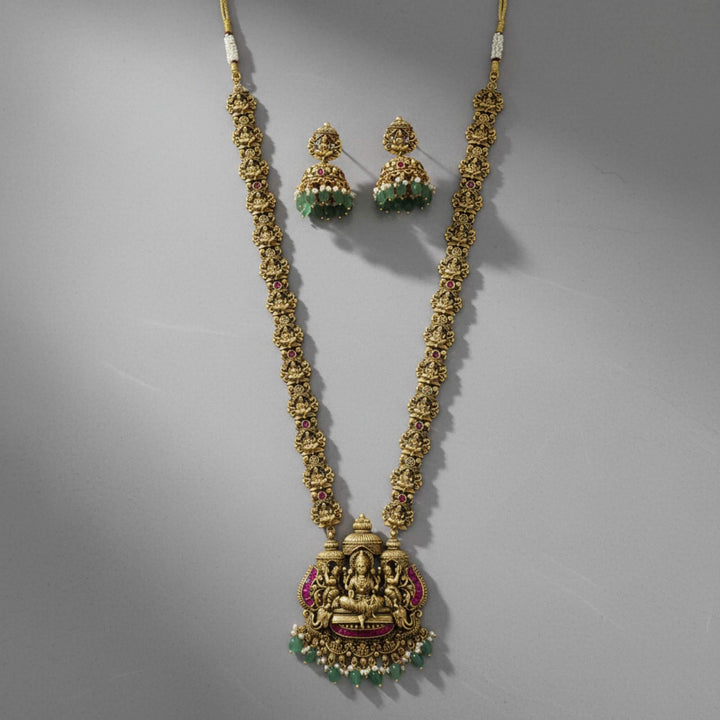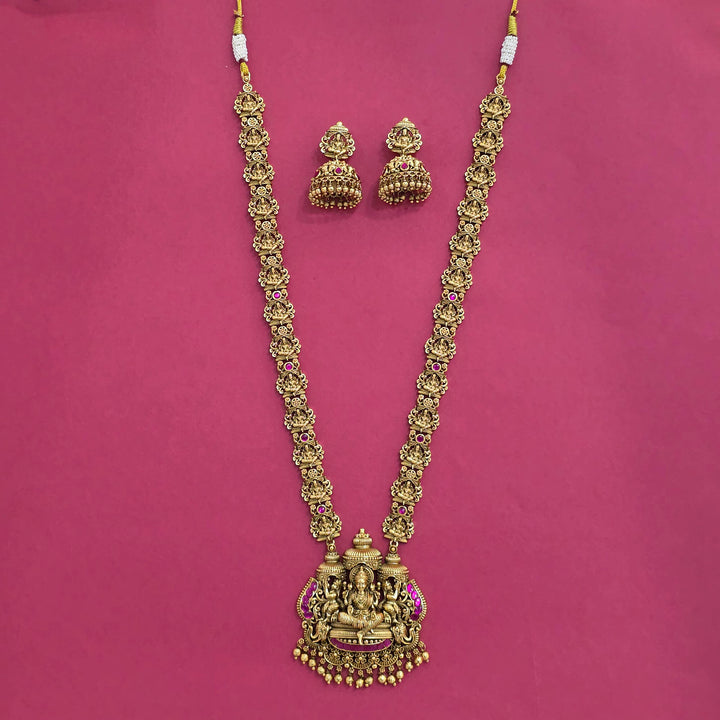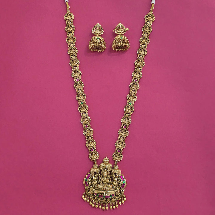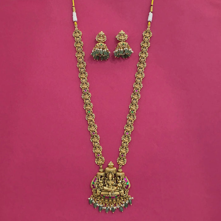 Weight: 143.0 Grams, Length = 18 Inch,Earring Height = 42 mm || Width = 28 mm,Long Necklace,Matte Gold Plating,Antique Necklace Set