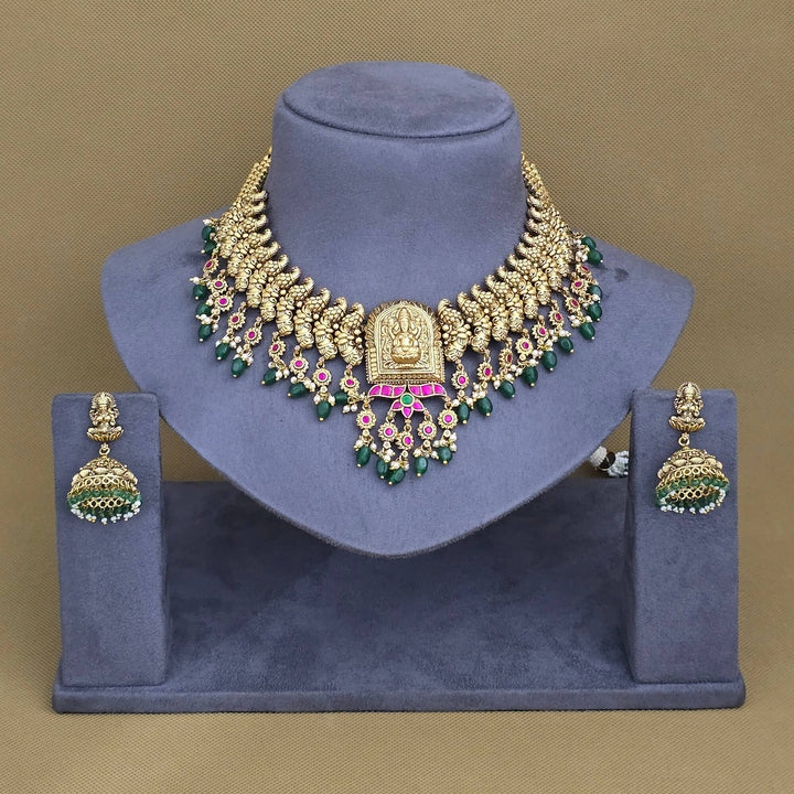 Weight: 78.0 Grams, Earring Height = 45 mm || Width = 28 mm,Regular Size And Adjustable,Peacock Necklace,Matte Gold Plating,Antique Necklace Set