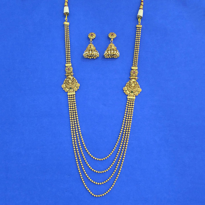 Weight: 110.0 Grams, Length = 24 Inch,Earring Height = 45 mm || Width = 30 mm,Long Necklace,Matte Gold Plating,Antique Necklace Set