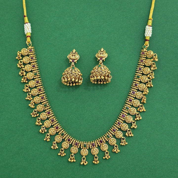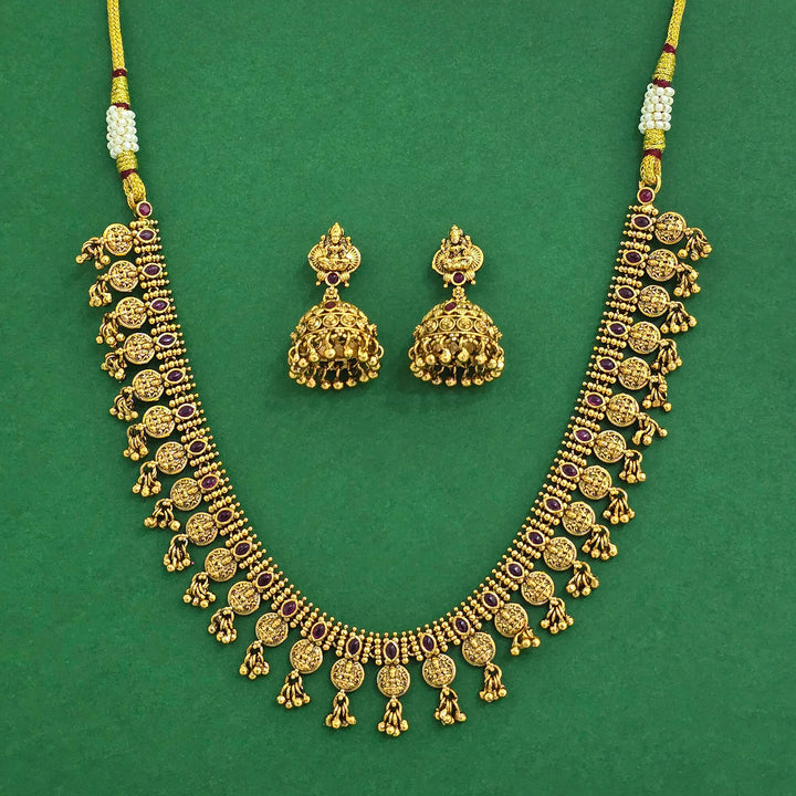 Weight: 58.0 Grams, Earring Height = 35 mm || Width = 22 mm,Regular Size And Adjustable,Temple Necklace,Matte Gold Plating,Antique Necklace Set