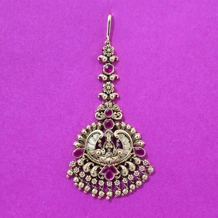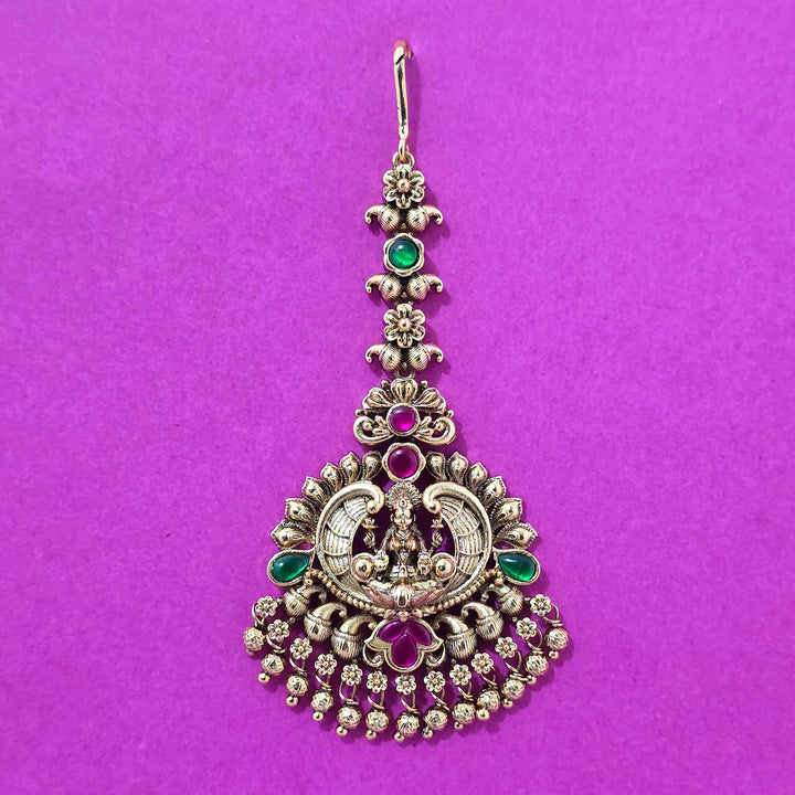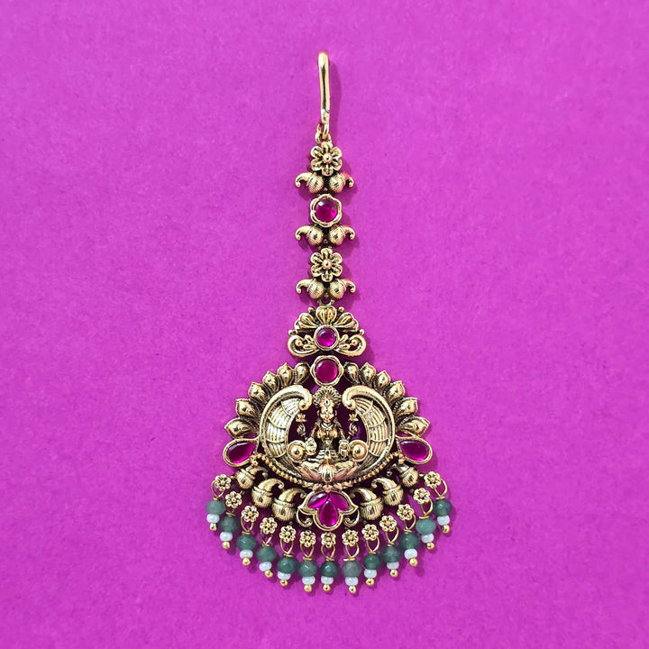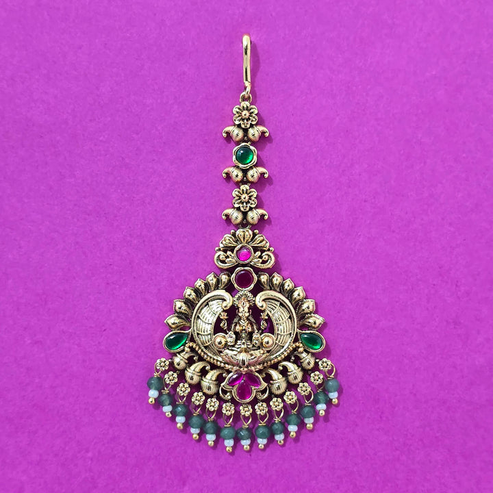 Weight: 15.0 Grams, Height = 85 mm || Width = 40 mm,Short Tikka,Matte Gold Plating,Antique Maang Tikka