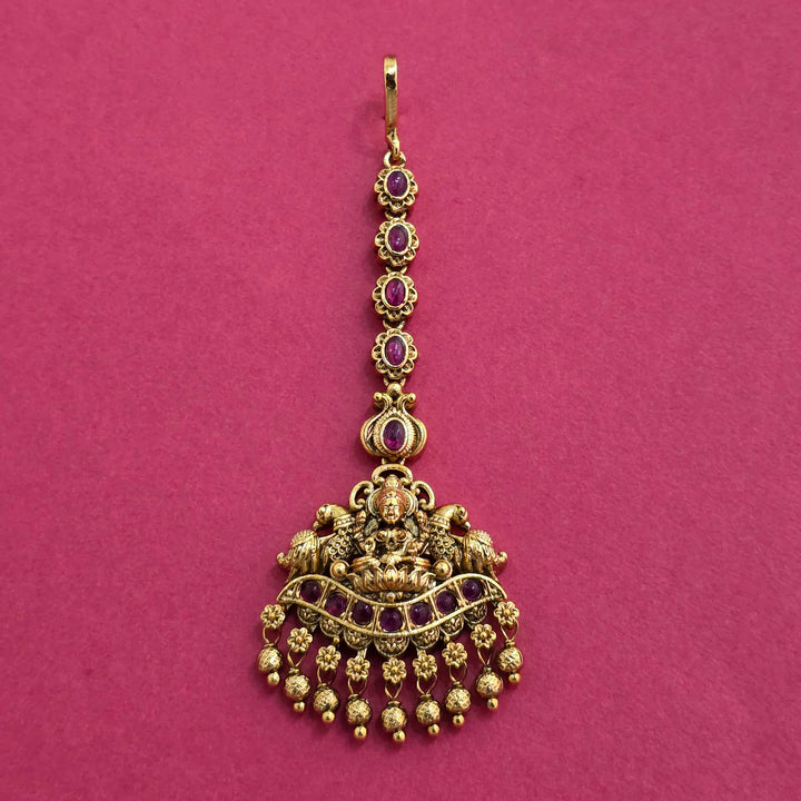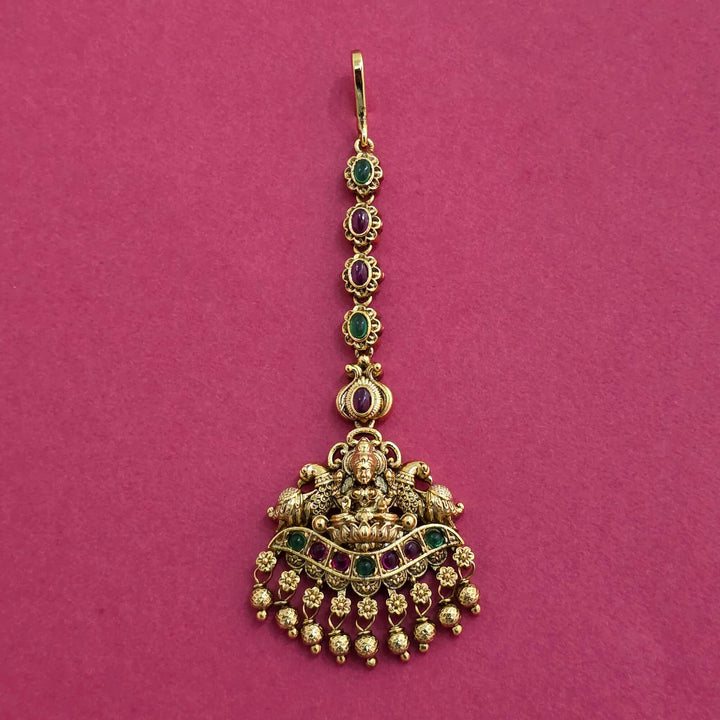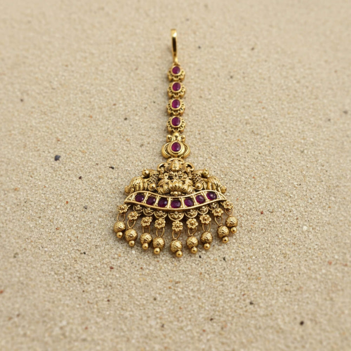 229121 Antique Temple Tikka With Matte Gold Plating