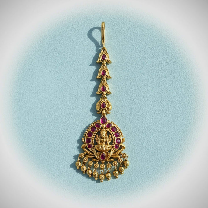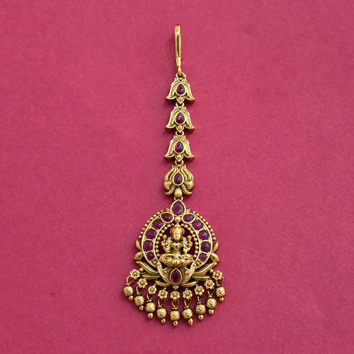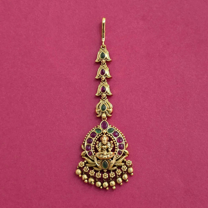 Weight: 9.0 Grams, Height = 85 mm || Width = 28 mm,Classic Design,Matte Gold Plating,Antique Maang Tikka