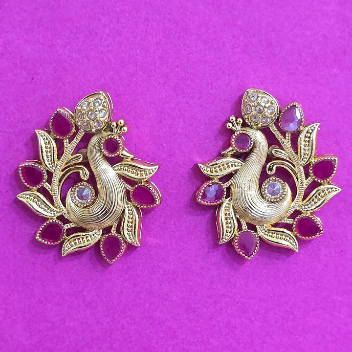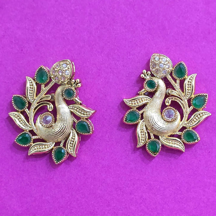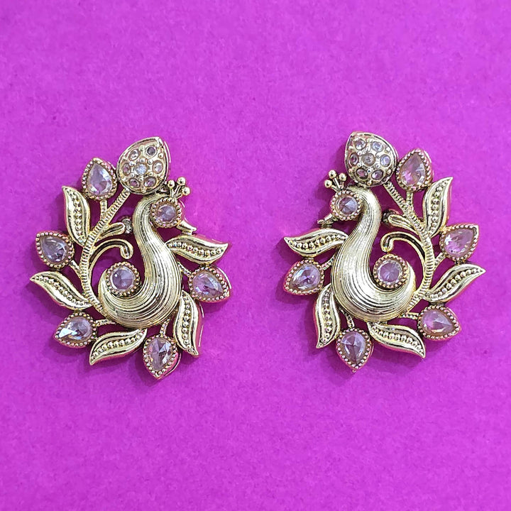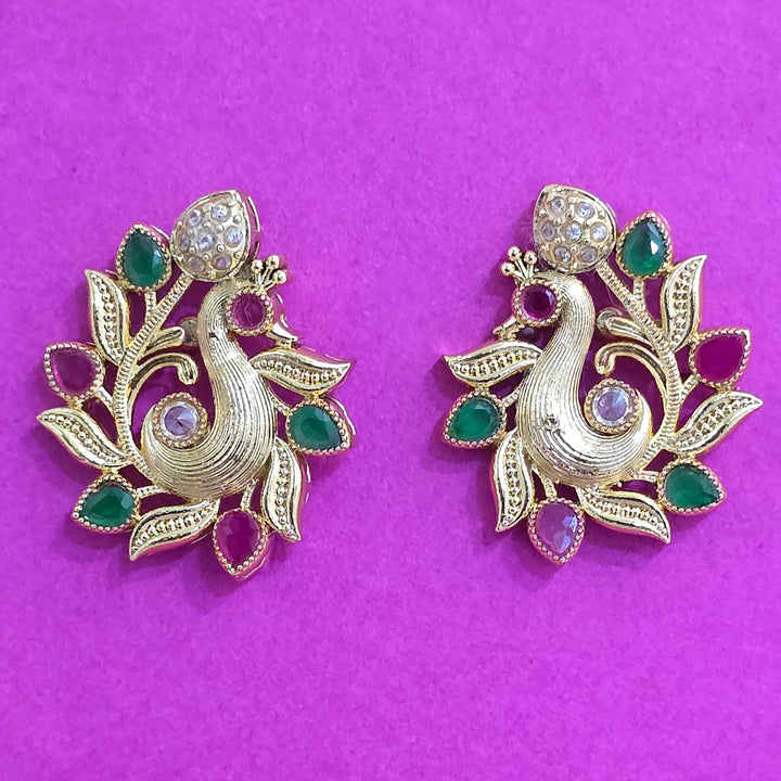 Weight: 11.0 Grams, Height = 28 mm || Width = 24 mm,Peacock Tops,Gold Plating,Antique Earring