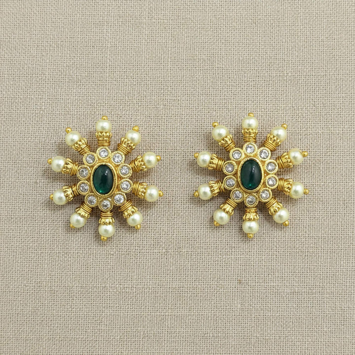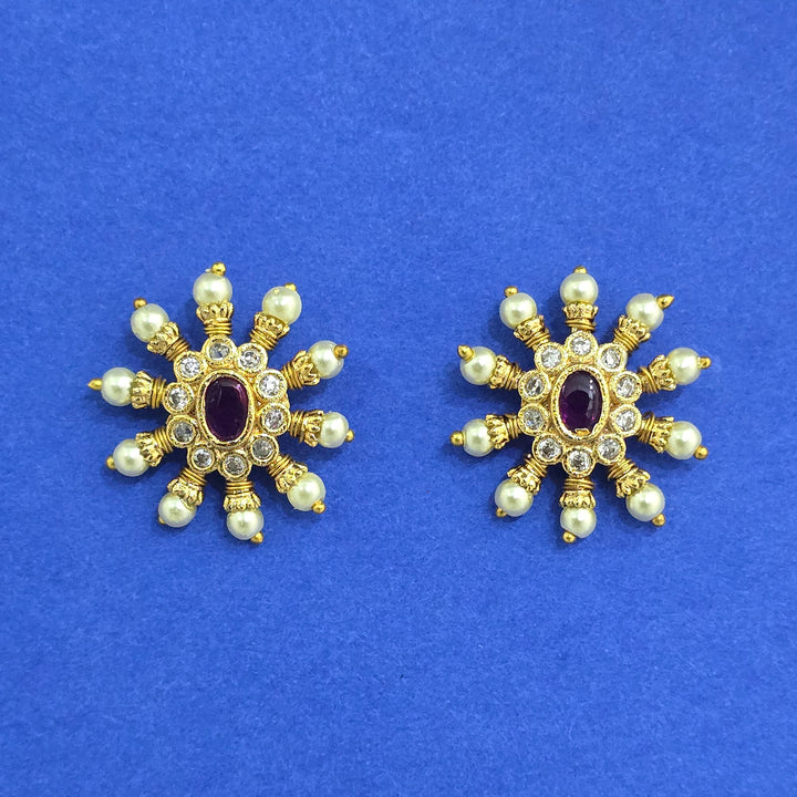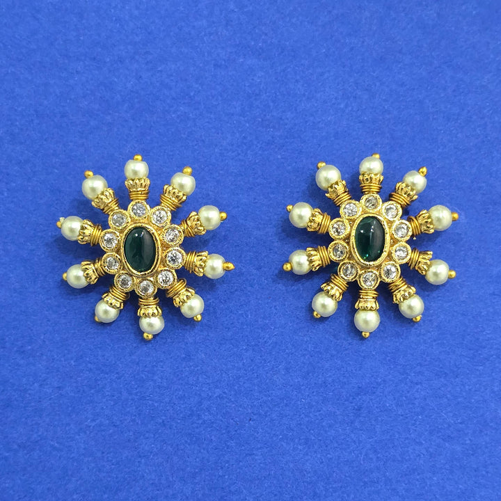 Weight: 7.0 Grams, Height = 25 mm || Width = 22 mm,Moti Tops,Gold Plating,Antique Earring