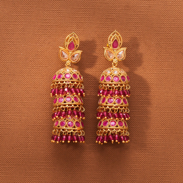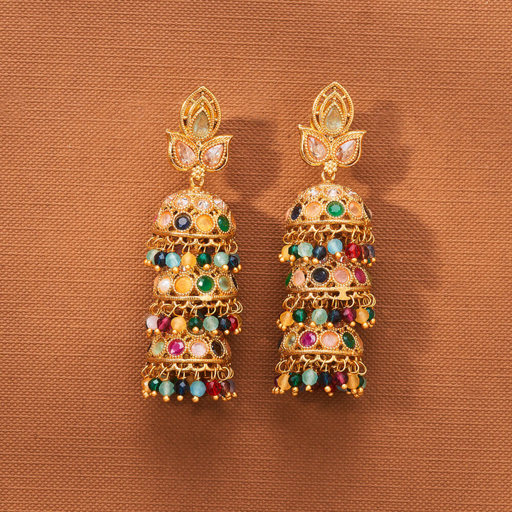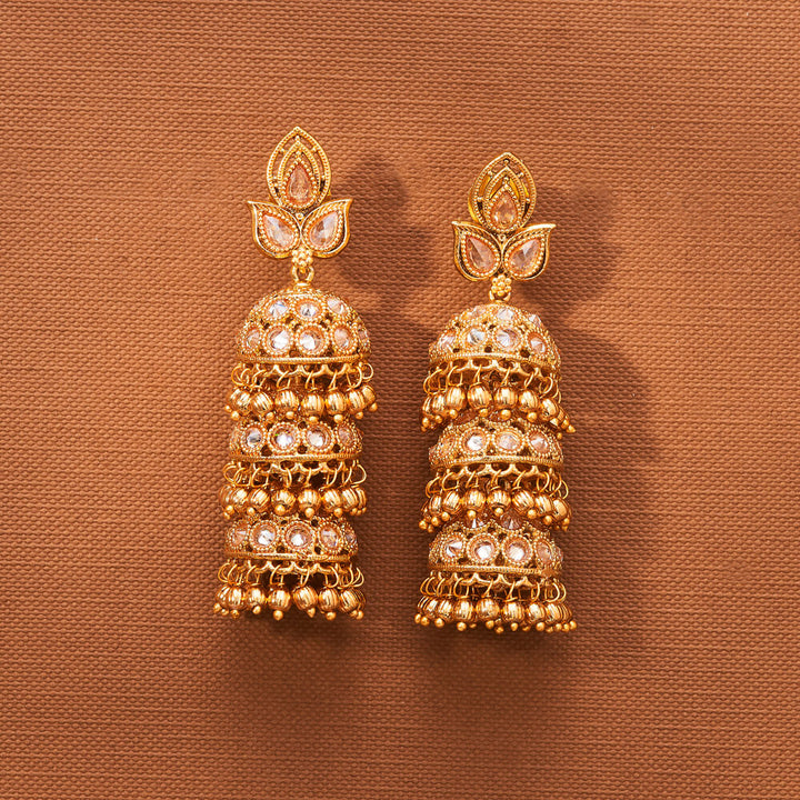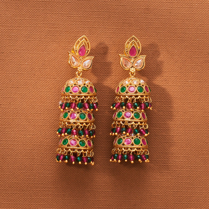 223001 Antique Triple Jhumki With Gold Plating