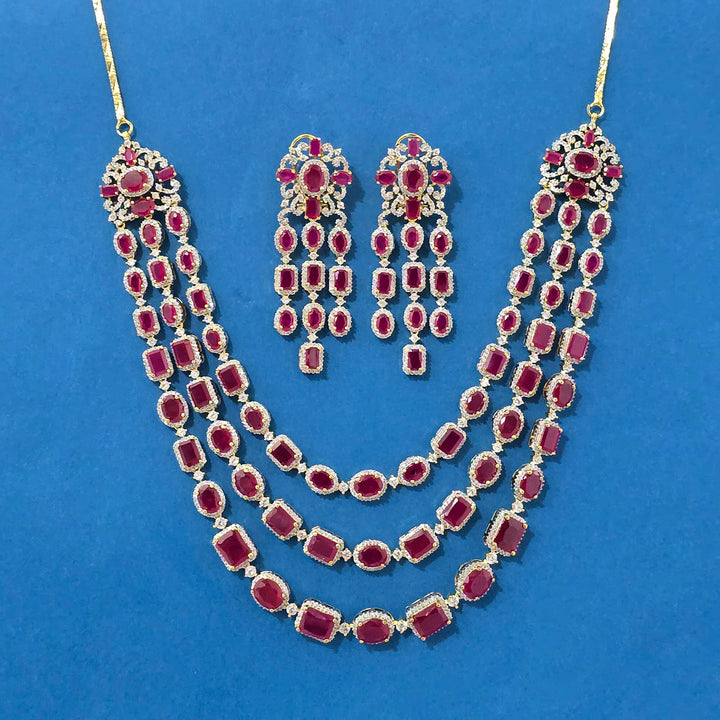 Weight: 98.0 Grams, Earring Height = 65 mm || Width = 22 mm,Regular Size 12 Inches With Adjustable Option,2 Tone Plating,American Diamond Necklace Set