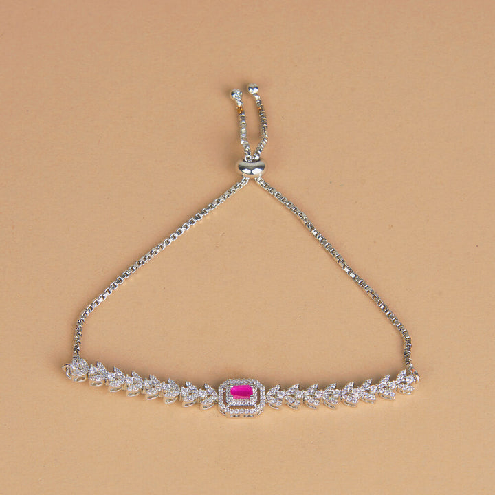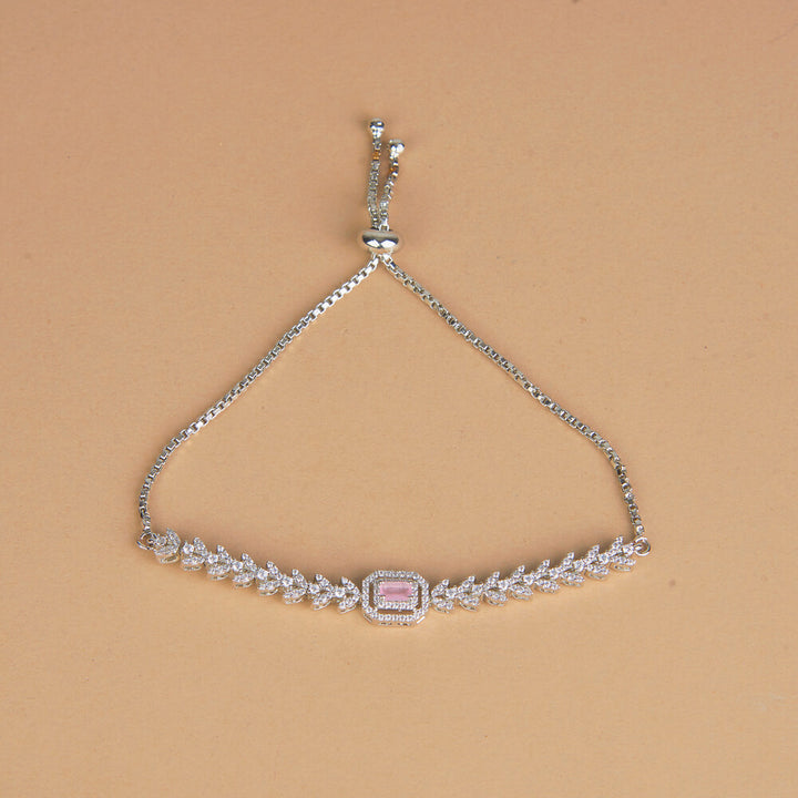 437300 Cubic Zirconia Adjustable Bracelet With Rhodium Plating