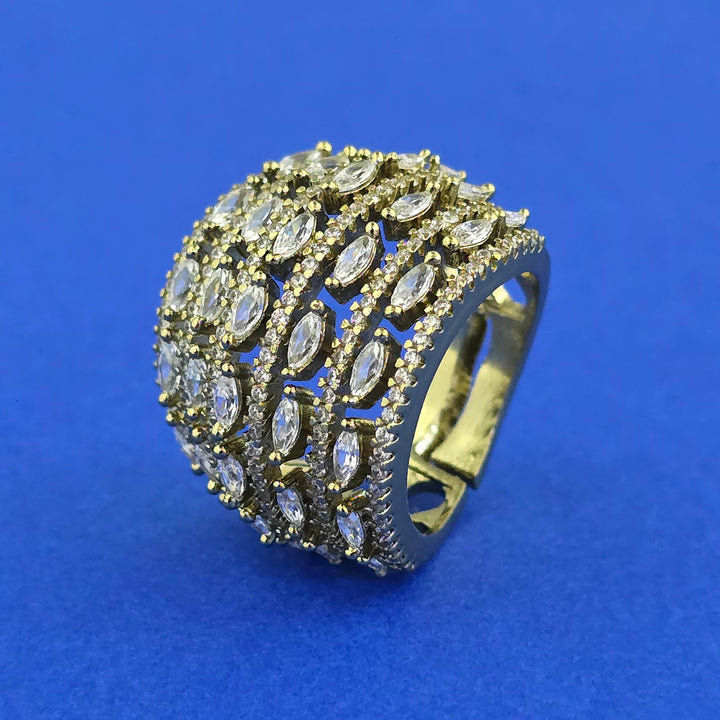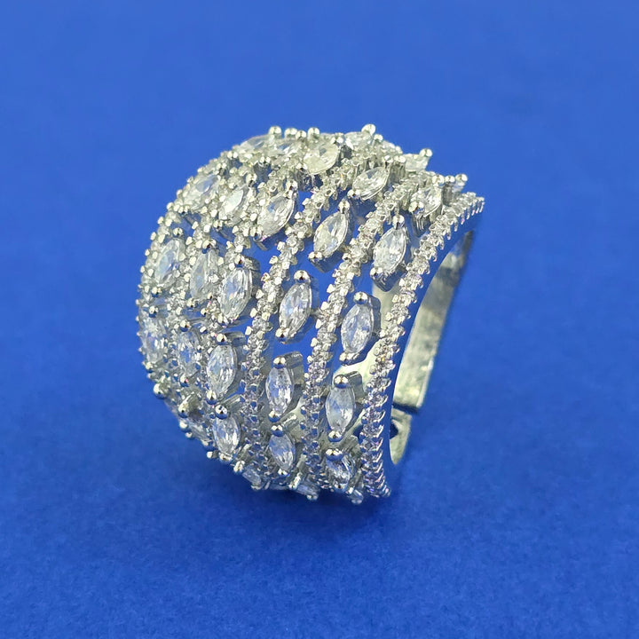 Weight: 10.0 Grams, Height = 22 mm || Width = 26 mm,Classic Design,Mehndi Plating,2 Tone Plating,Rhodium Plating,American Diamond Ring,American Diamond Ring