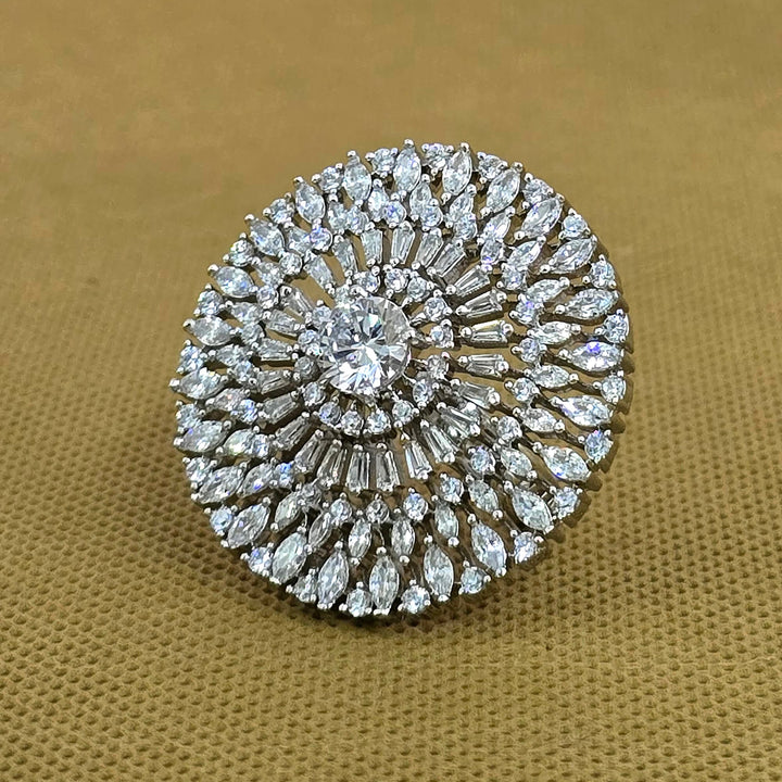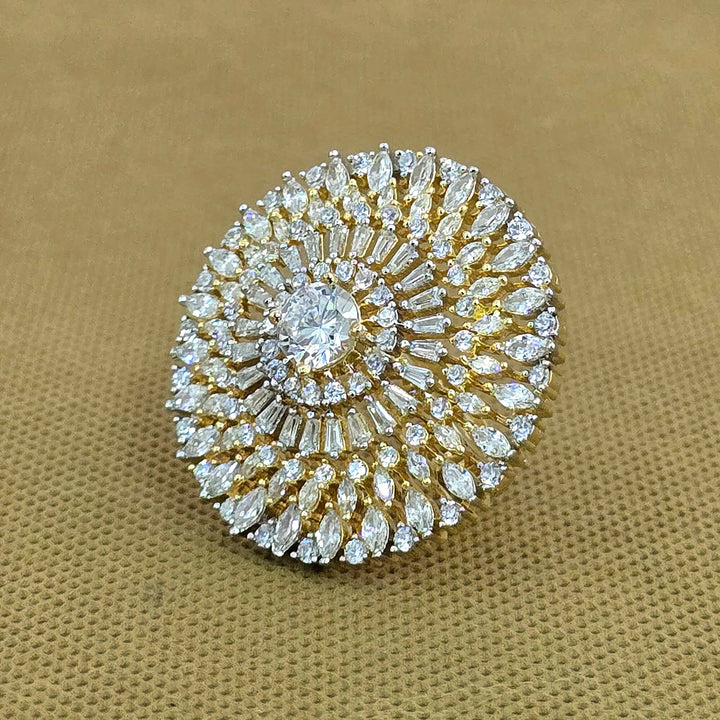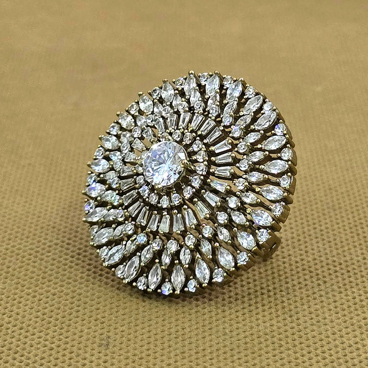 Weight: 4.0 Grams, Height = 35 mm || Width = 35 mm,Classic Ring,Mehndi Plating,2 Tone Plating,Rhodium Plating,American Diamond Ring