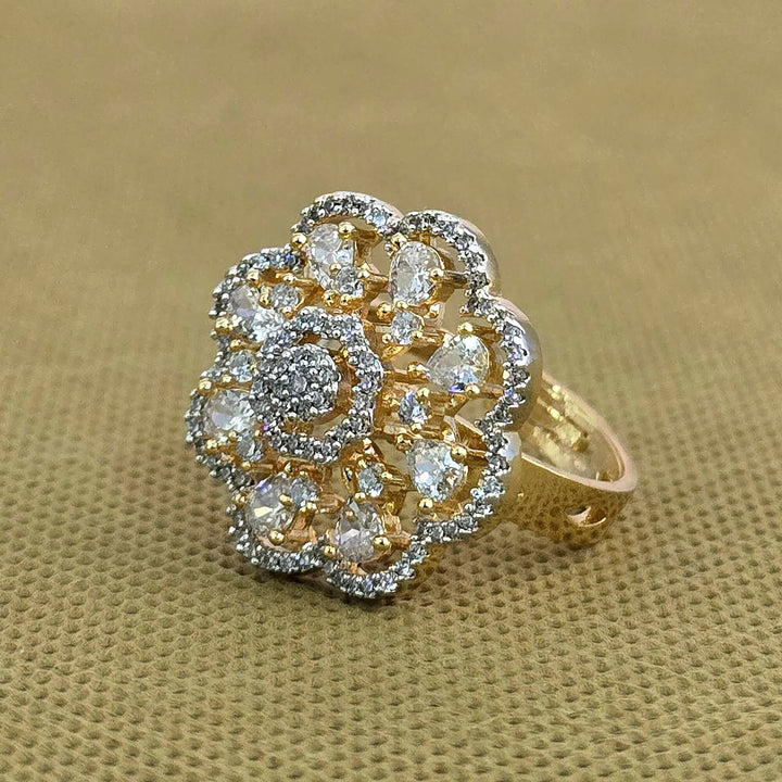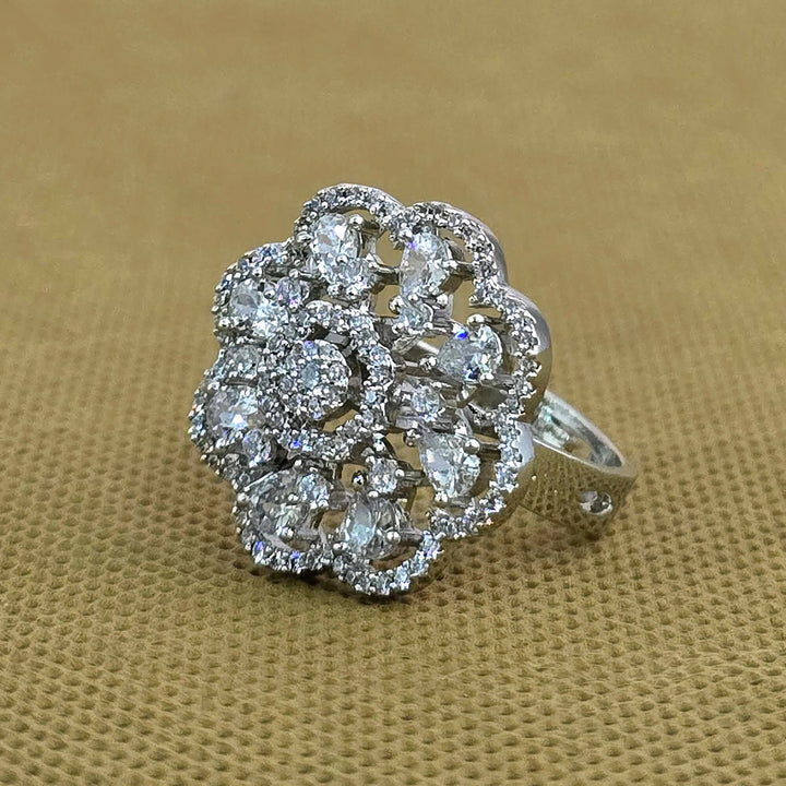 Weight: 7.0 Grams, Height = 21 mm || Width = 21 mm,Classic Ring,2 Tone Plating,Rhodium Plating,American Diamond Ring