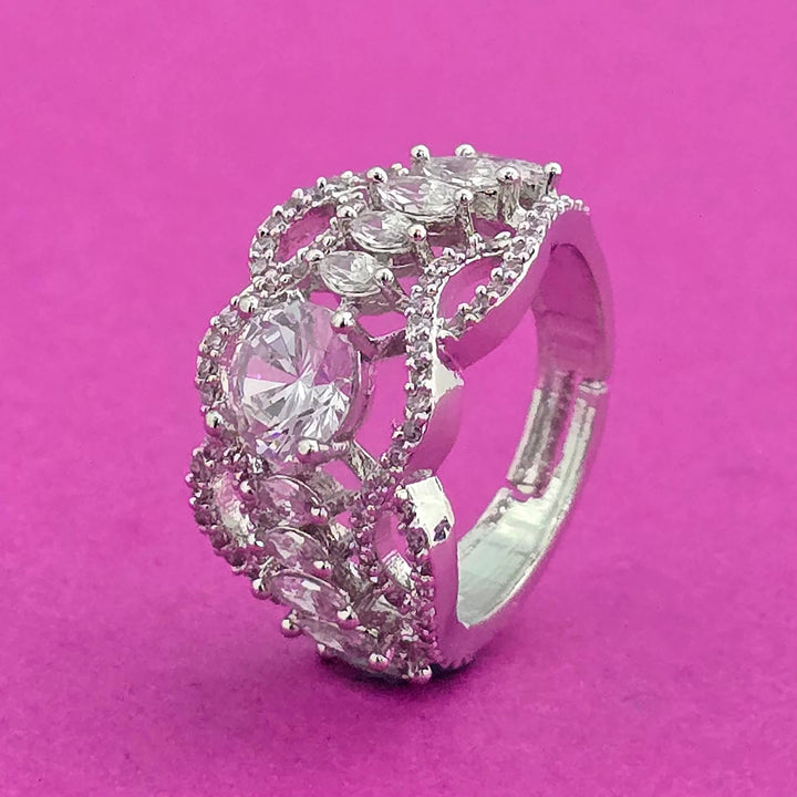 Weight: 6.0 Grams, Height = 13 mm || Width = 20 mm,Classic Ring,Rhodium Plating,2 Tone Plating,American Diamond Ring