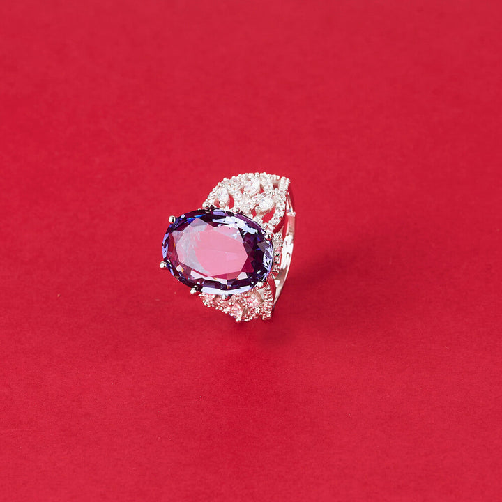 Weight: 9.0 Grams, Height = 18 mm || Width = 14 mm,Classic Ring,Rhodium Plating,American Diamond Ring