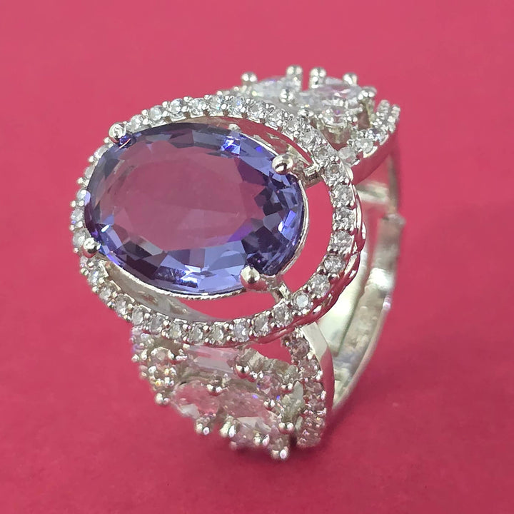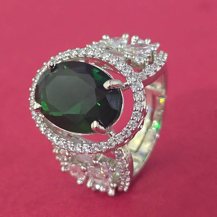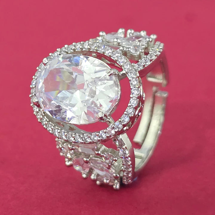 Weight: 7.0 Grams, Height = 18 mm || Width = 24 mm,Classic Ring,Rhodium Plating,American Diamond Ring