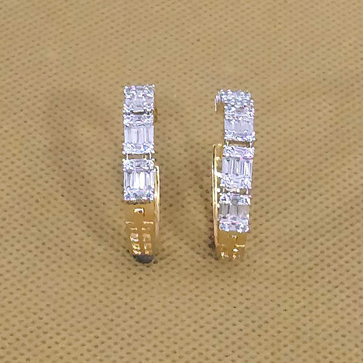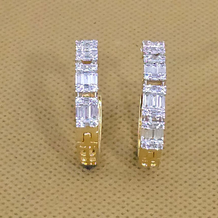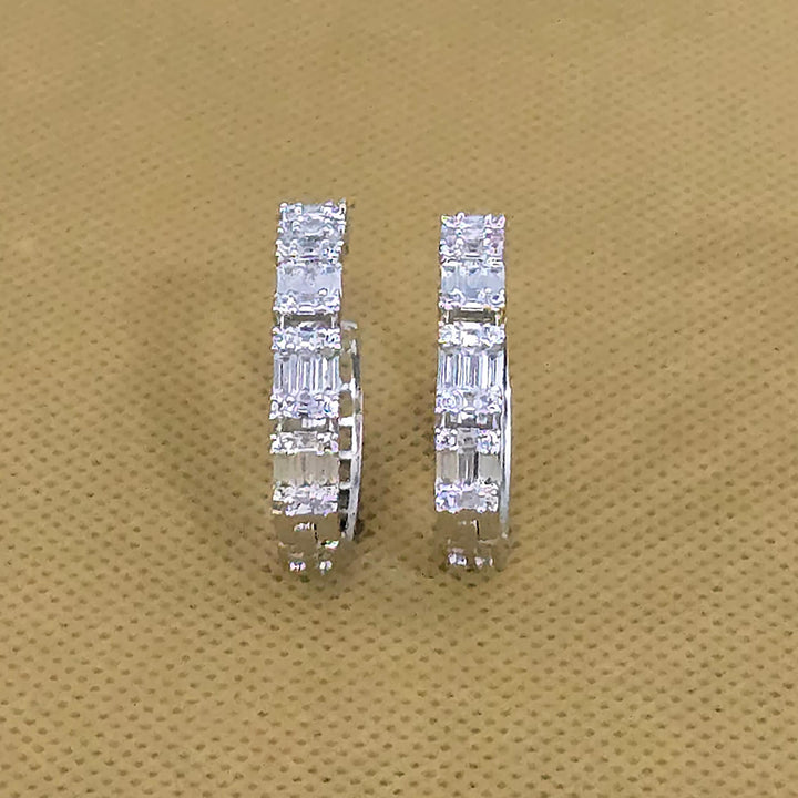 Weight: 8.0 Grams, Height = 27 mm || Width = 5 mm,Classic Bali,Carat Plating,2 Tone Plating,Rhodium Plating,American Diamond Earring