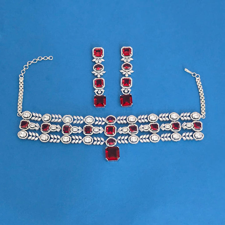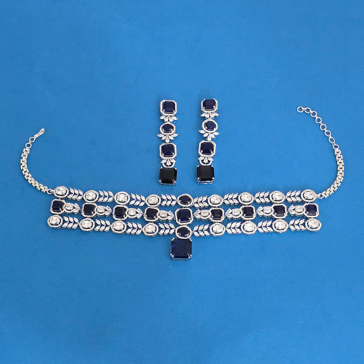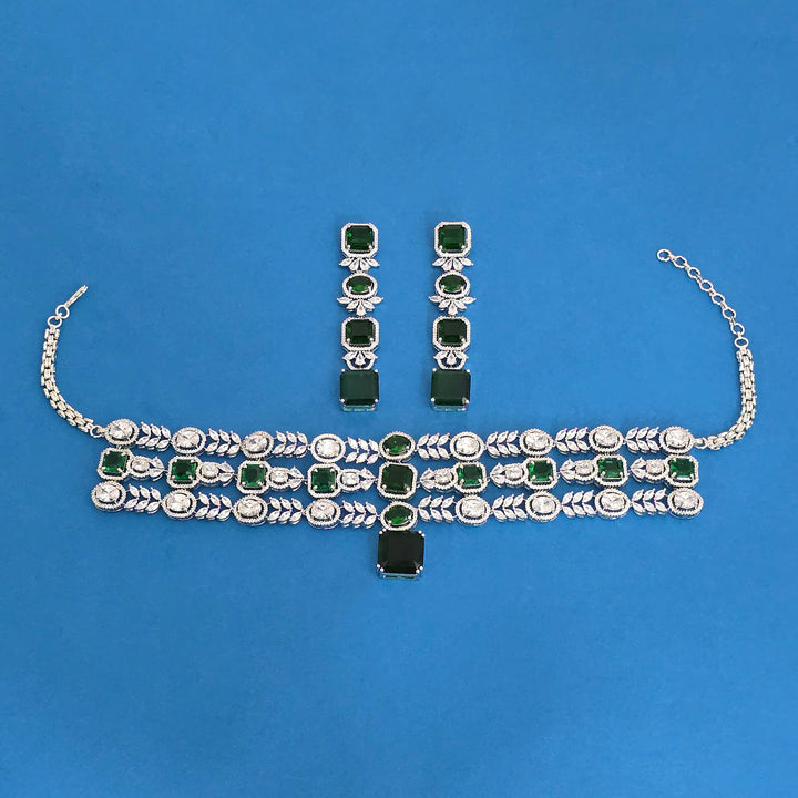 439445 Cubic Zirconia Choker Necklace Set With Mehndi Plating