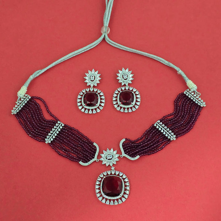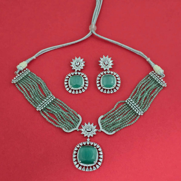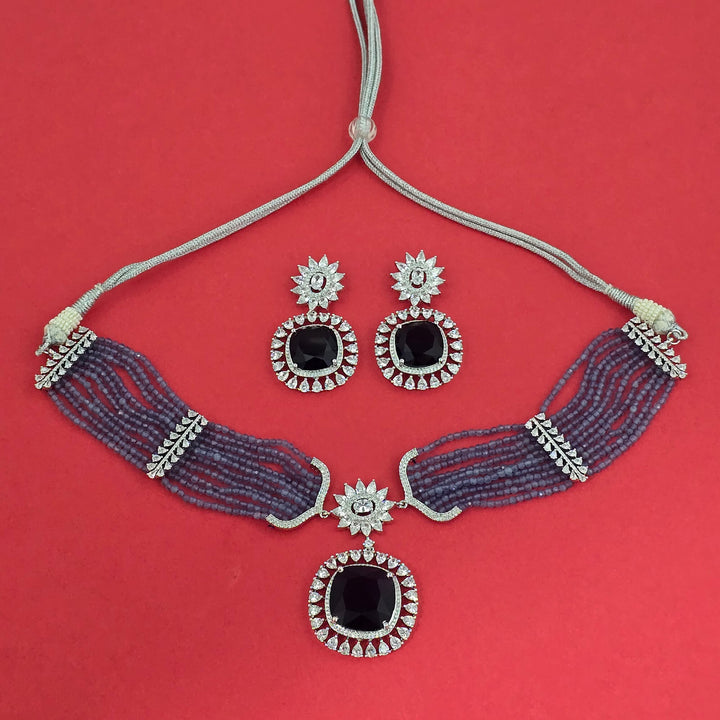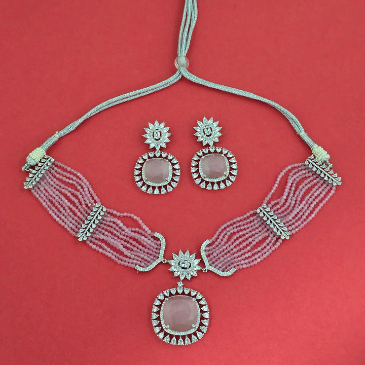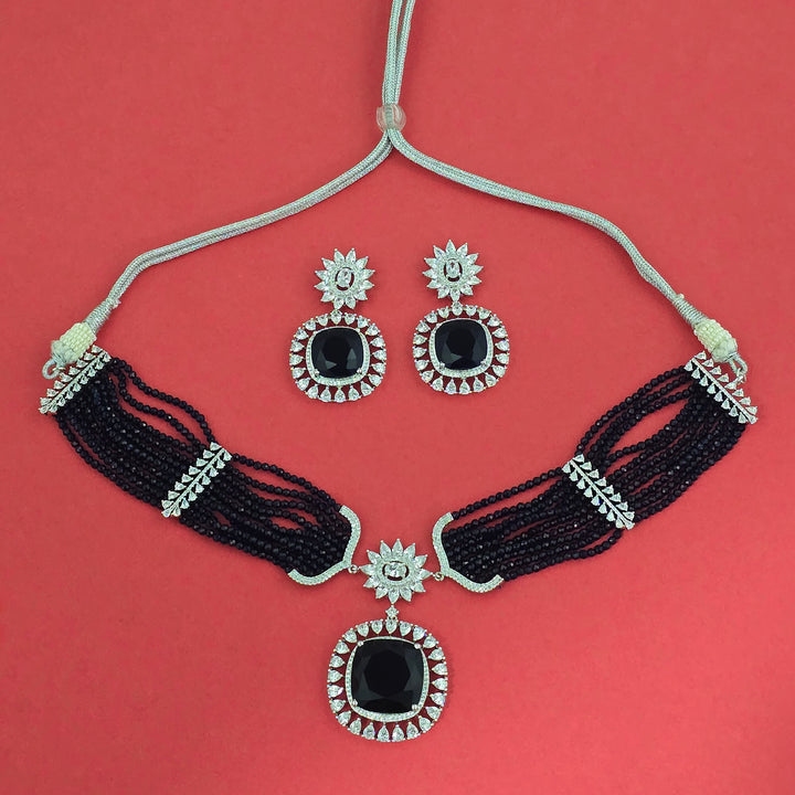 442338 Cubic Zirconia Choker Necklace Set With Rhodium Plating