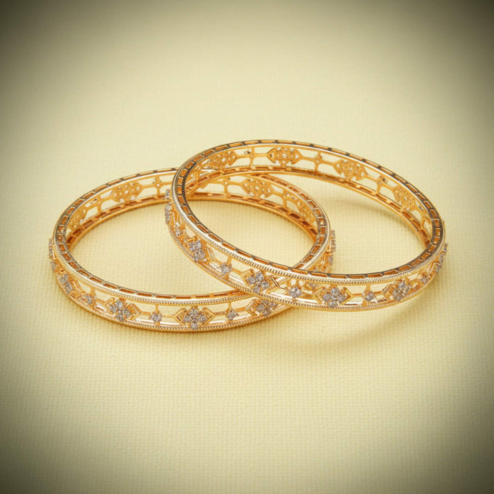 432645 Cubic Zirconia Classic Bangles With 2 Tone Mehndi Plating