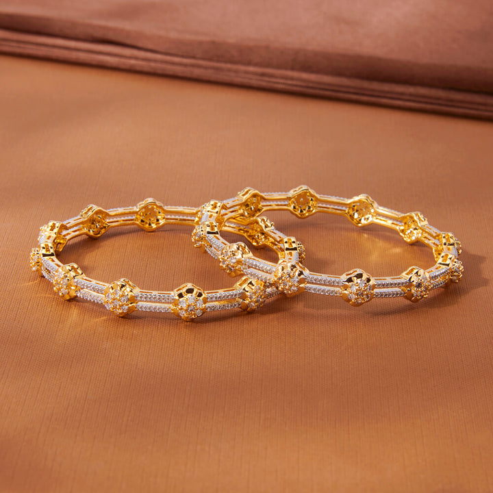 435679 Cubic Zirconia Classic Bangles With 2 Tone Plating