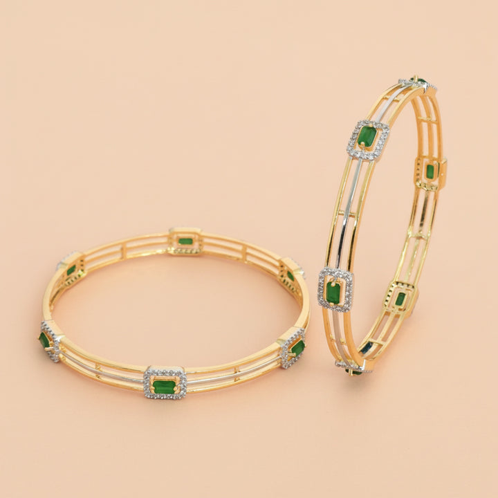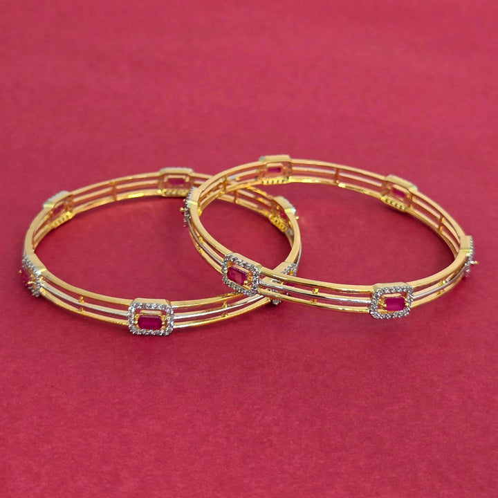 Weight: 24.0 Grams, 2 Pc Bangle,Latest Design,2 Tone Plating,American Diamond Bangle