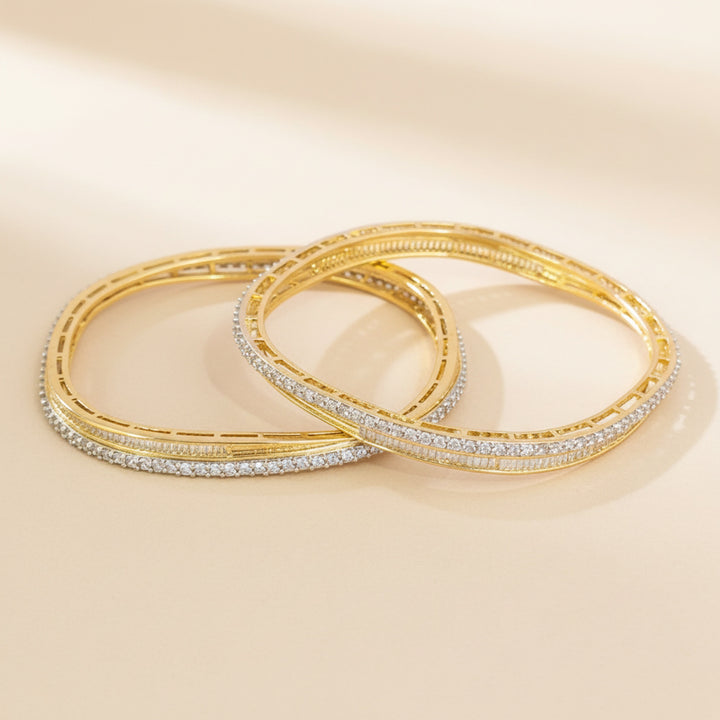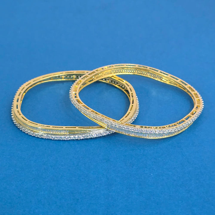 Weight: 34.0 Grams, 2 Pc Bangle,Delicate Design,2 Tone Plating,American Diamond Bangle