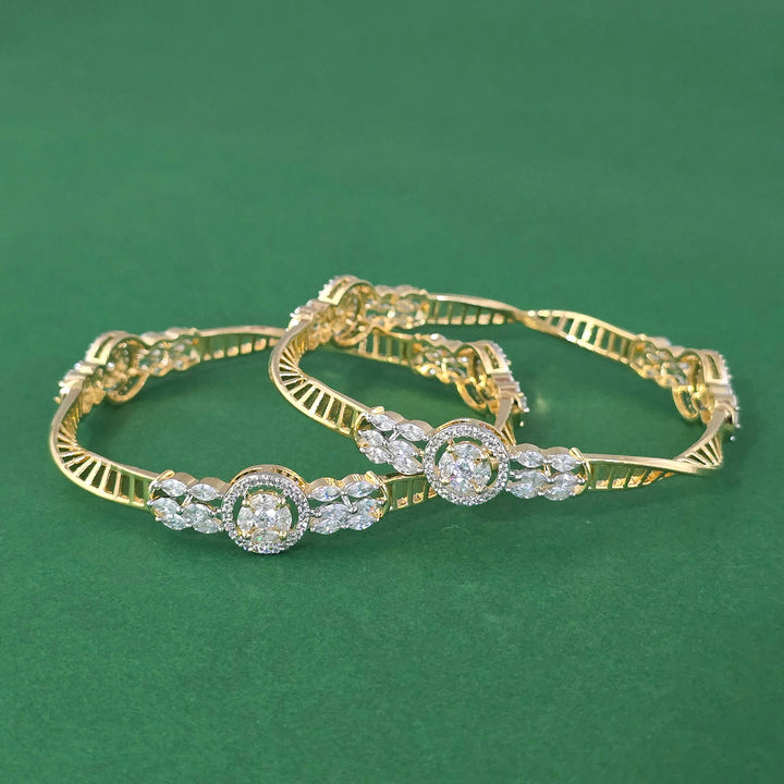 Weight: 27.0 Grams, 2 Pc Bangles,Elegant Look,2 Tone Plating,American Diamond Bangle