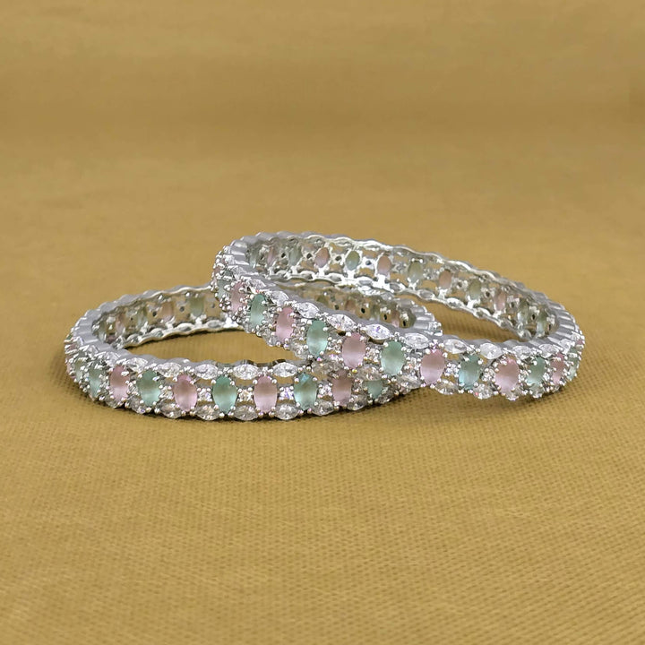 Weight: 60.0 Grams, 2 Pc Bangle,Handmade Design,Rhodium Plating,American Diamond Bangle