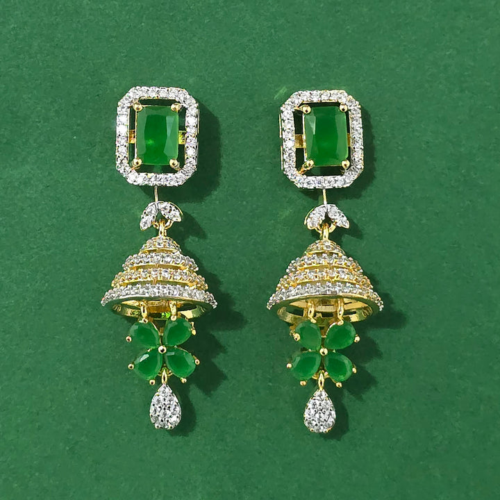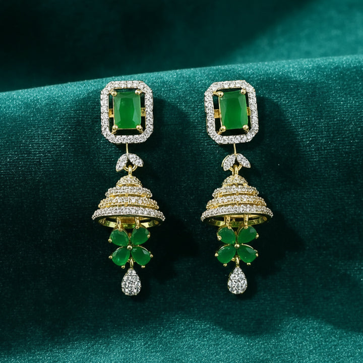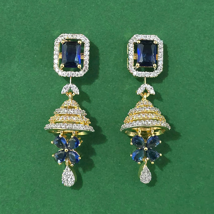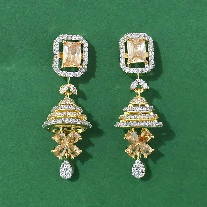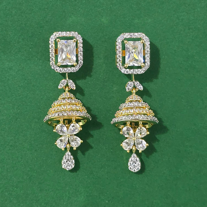 Weight: 7.0 Grams, Height = 40 mm || Width = 13 mm,Jhumki,2 Tone Plating,American Diamond Earring