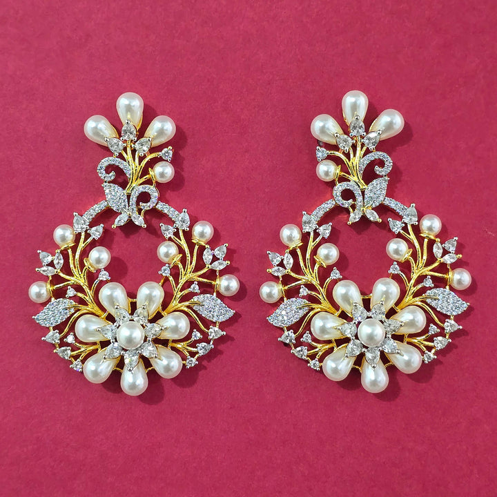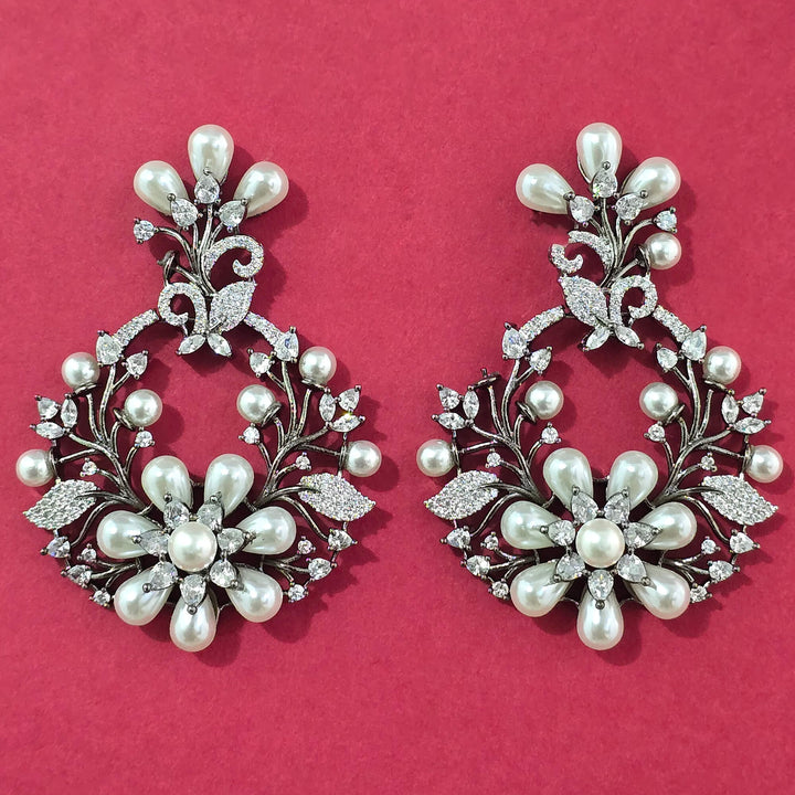 Weight: 36.0 Grams, Height = 65 mm || Width = 46 mm,Trendy Look,Black Plating,2 Tone Plating,Rhodium Plating,American Diamond Earring