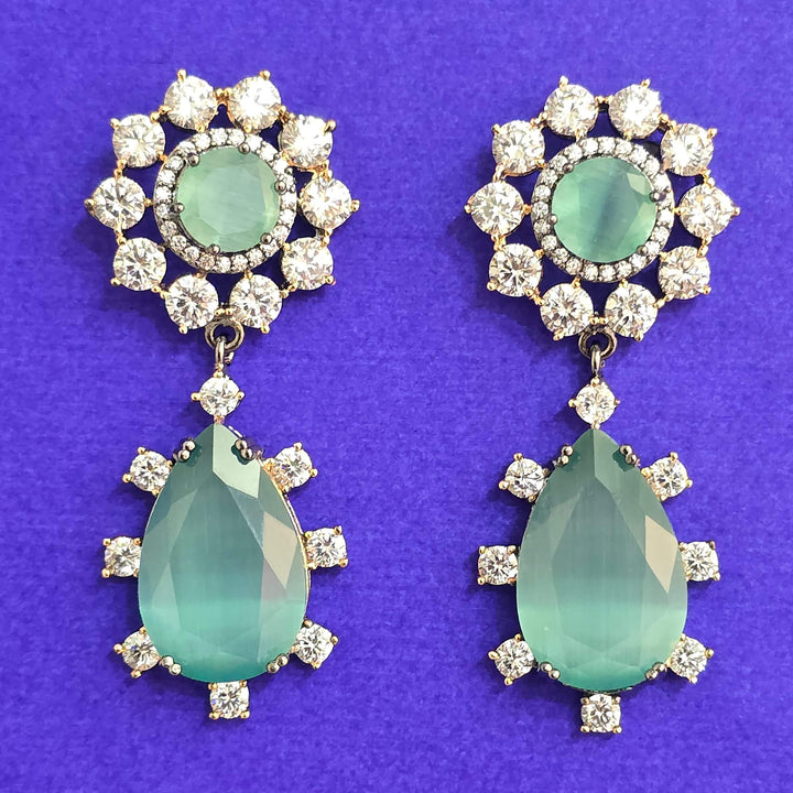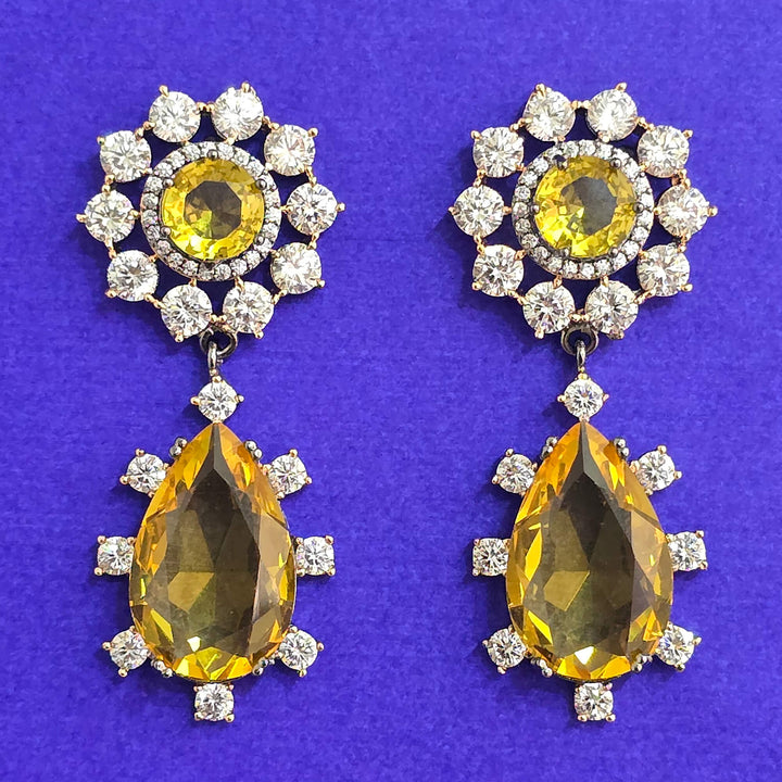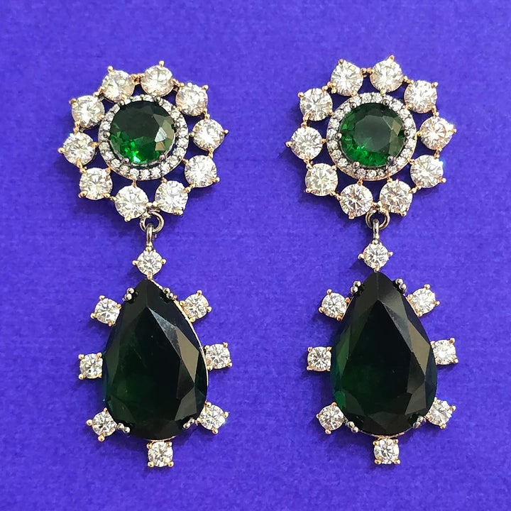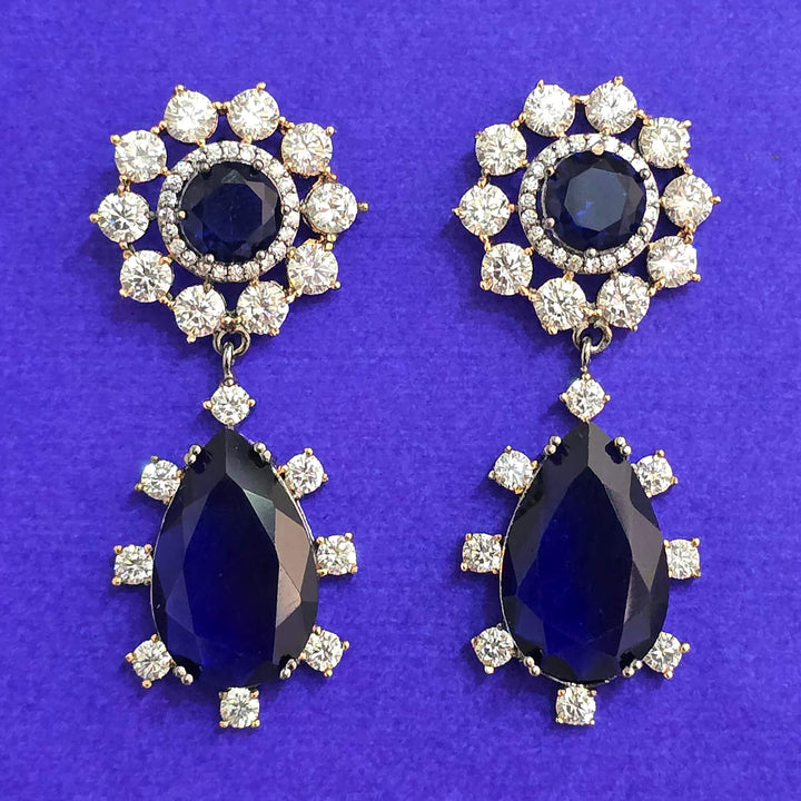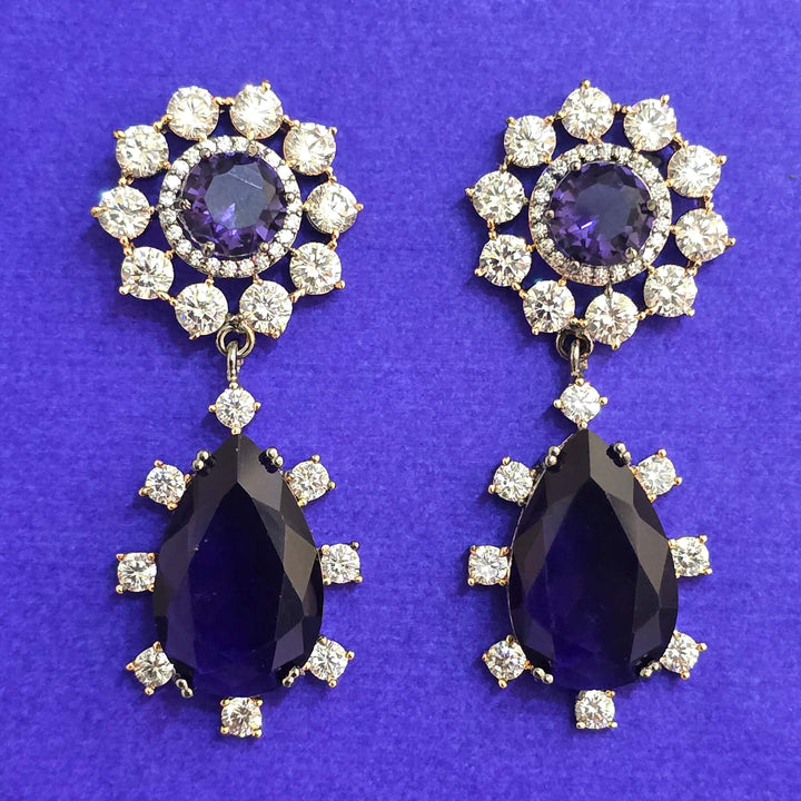 Weight: 22.0 Grams, Height = 52 mm || Width = 22 mm,Bollywood Look,Black Rose Plating,American Diamond Earring