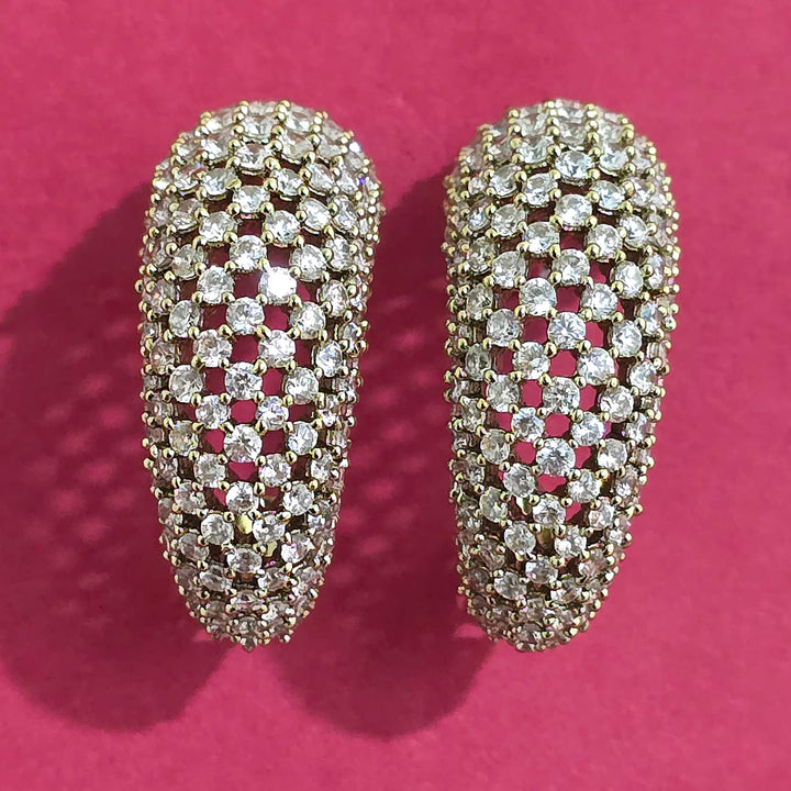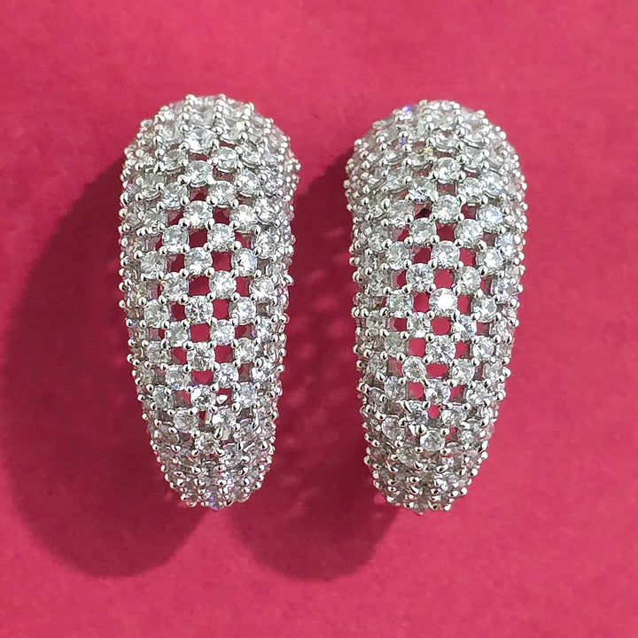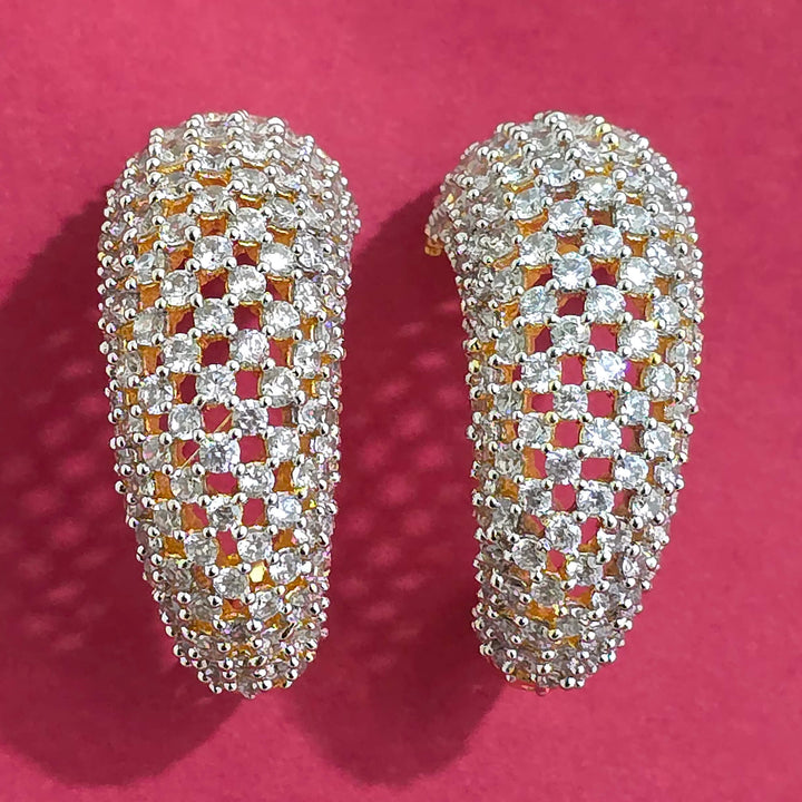 Weight: 21.0 Grams, Height = 33 mm || Width = 15 mm,Trendy Look,Mehndi Plating,2 Tone Plating,Rhodium Plating,American Diamond Earring