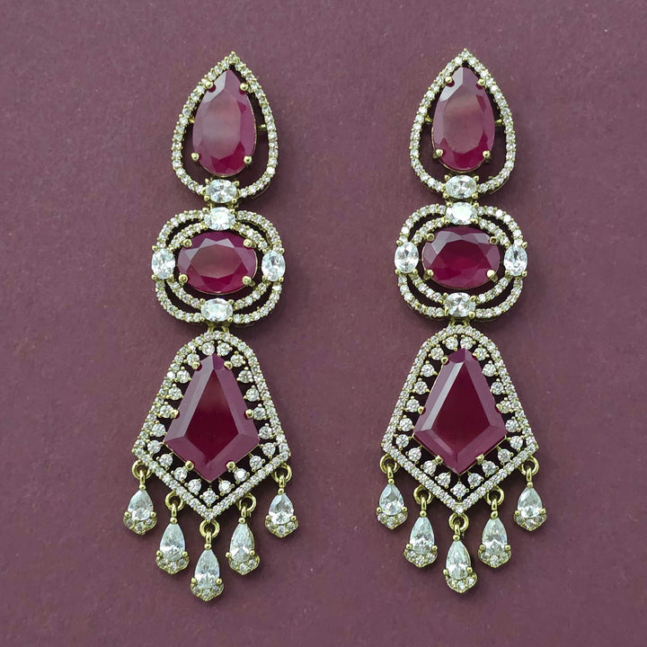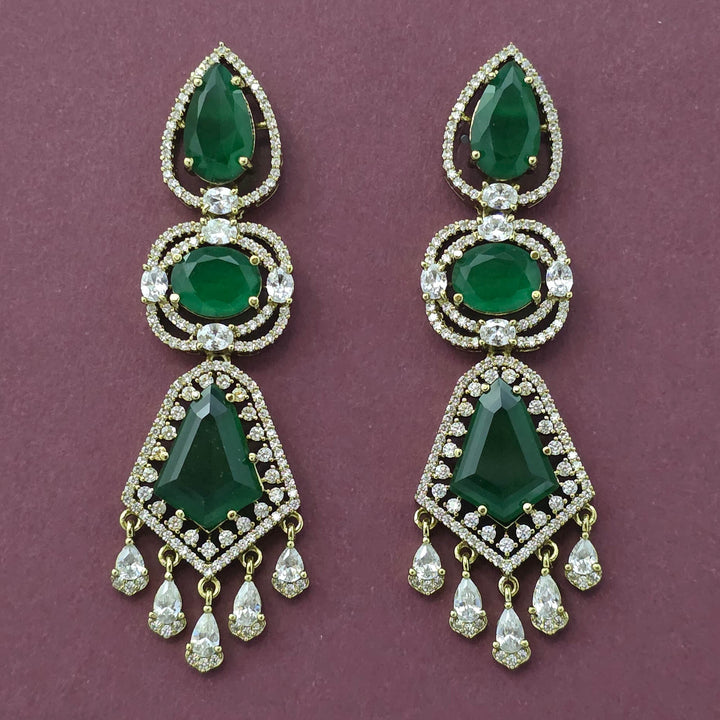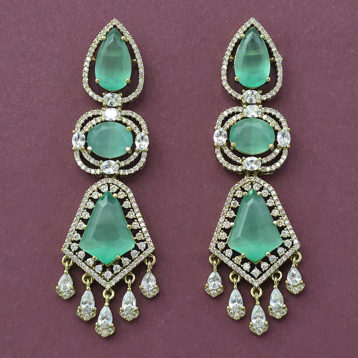 Weight: 23.0 Grams, Height = 72 mm || Width = 23 mm,Bollywood Look,Mehndi Plating,American Diamond Earring
