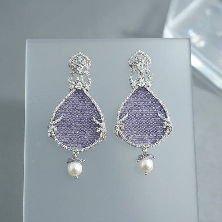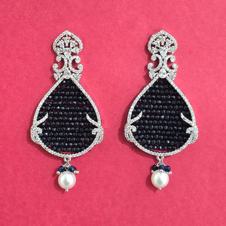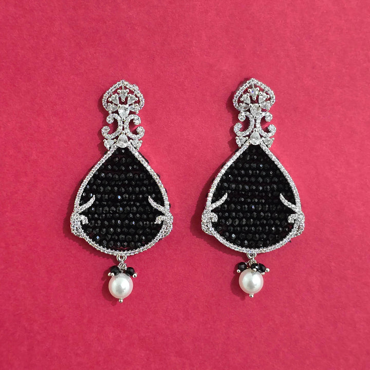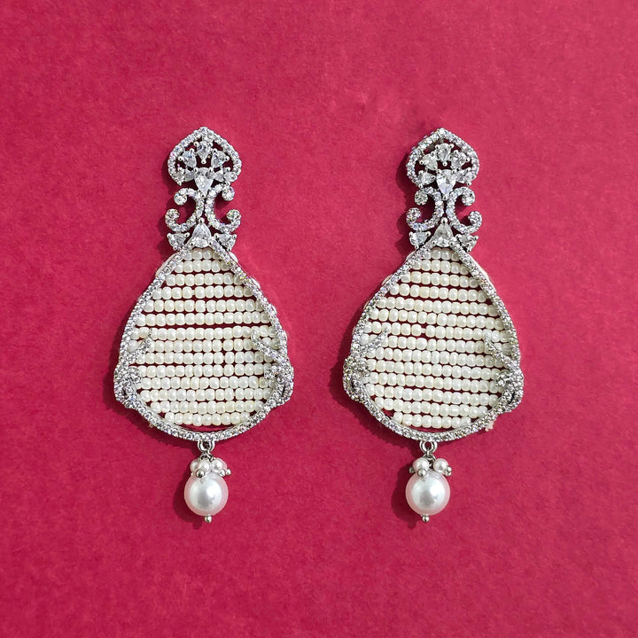 Weight: 17.0 Grams, Height = 62 mm || Width = 28 mm,Bandhai Earring,Rhodium Plating,American Diamond Earring