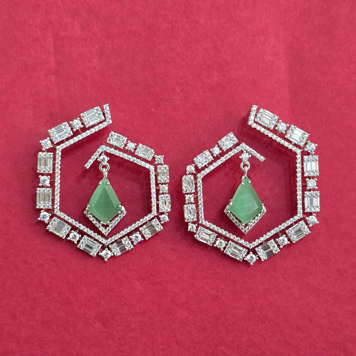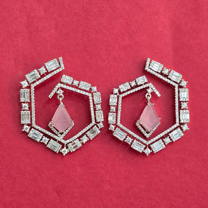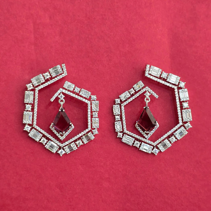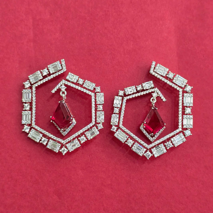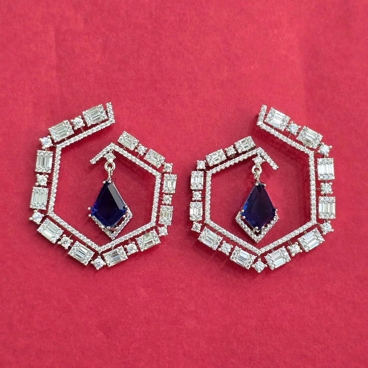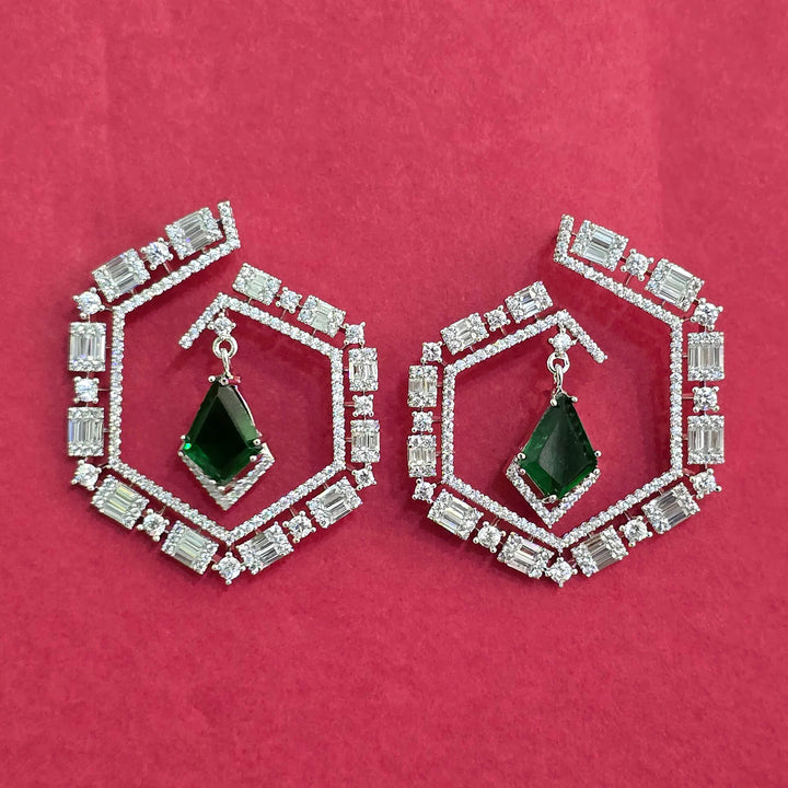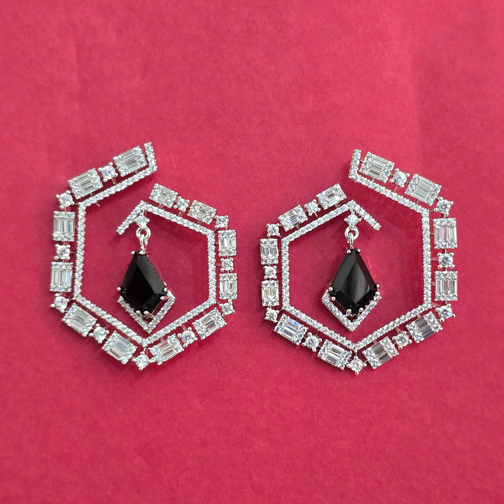 Weight: 17.0 Grams, Height = 43 mm || Width = 35 mm,Latest Design,Rhodium Plating,American Diamond Earring
