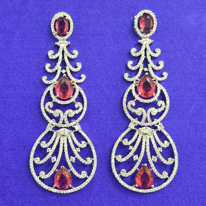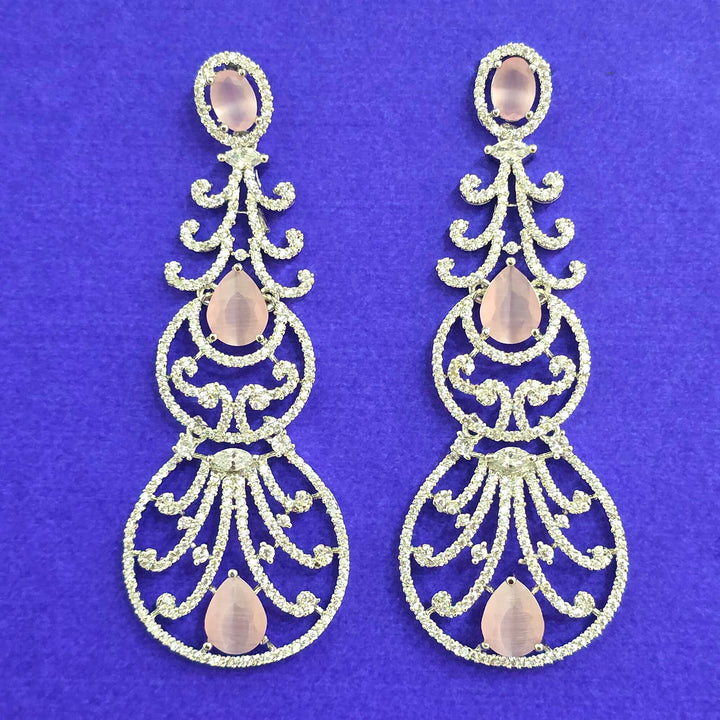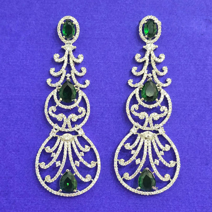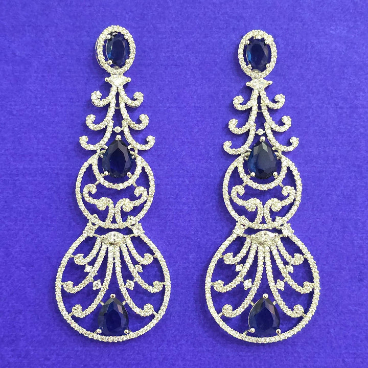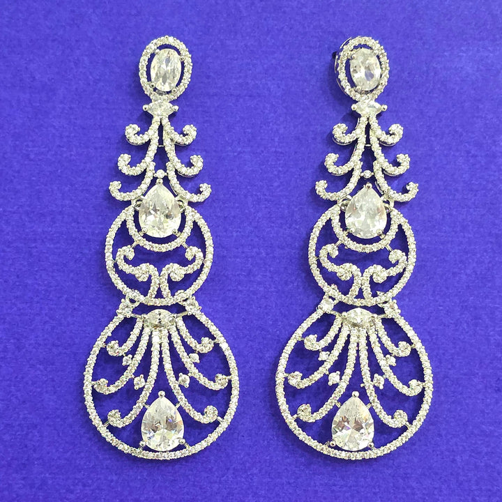 Weight: 20.0 Grams, Height = 74 mm || Width = 28 mm,Bollywood Look,Rhodium Plating,American Diamond Earring