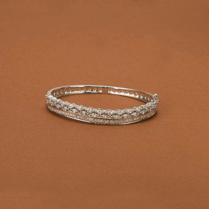 436998 Cubic Zirconia Classic Kada With 2 Tone Rhodium Plating