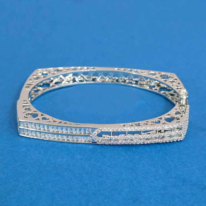 Weight: 19.0 Grams, Height = 56 mm || Width = 49 mm,Openable Kada,American Diamond Kada,2 Tone Plating,Rhodium Plating