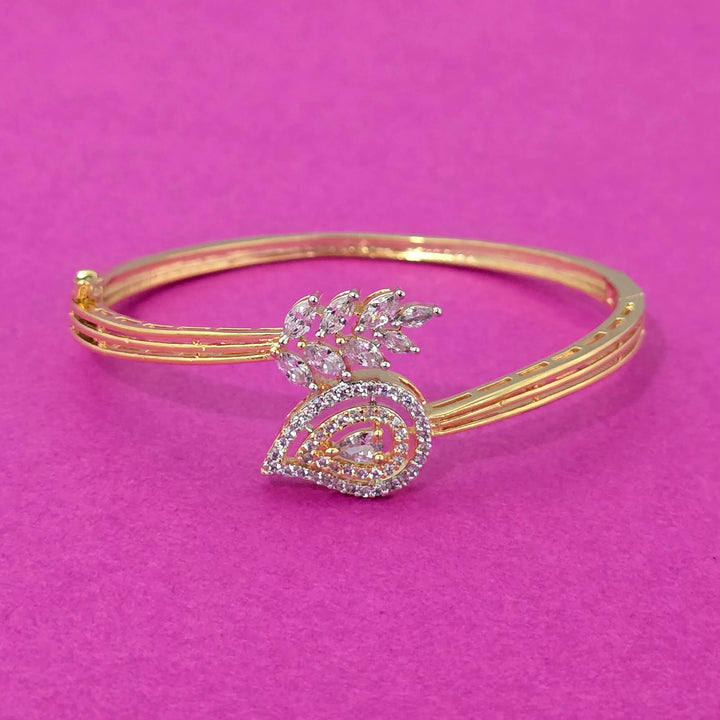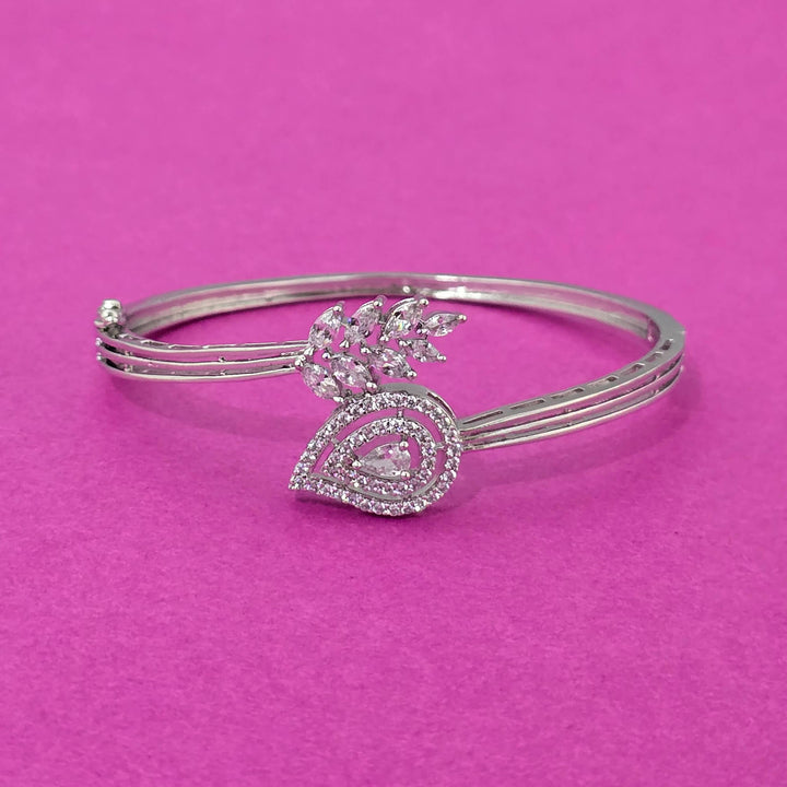 Weight: 13.0 Grams, Height = 47 mm || Width = 56 mm,Openable Kada,2 Tone Plating,Rhodium Plating,American Diamond Kada