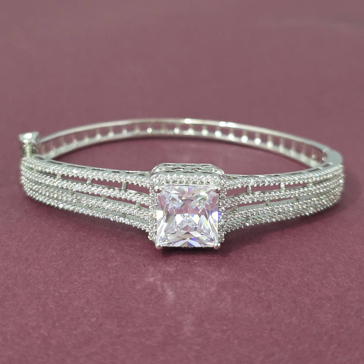 Weight: 16.0 Grams, Height = 46 mm || Width = 56 mm,Openable Kada,Rhodium Plating,American Diamond Kada