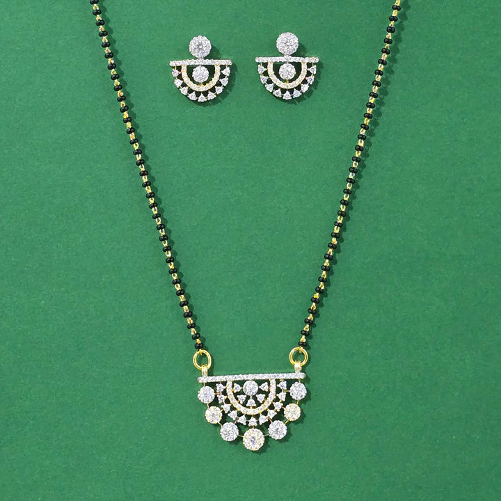 Weight: 11.0 Grams, Pendant Height = 19 mm || Width = 28 mm,Earring Height = 17 mm || Width = 16 mm,Chain - 18 Inch,2 Tone Plating,American Diamond Mangal Sutra