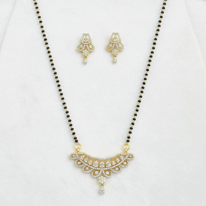 Weight: 13.0 Grams, Pendant Height = 24 mm || Width = 43 mm,Earring Height = 22 mm || Width = 13 mm,Chain - 18 Inch,2 Tone Plating,American Diamond Mangal Sutra