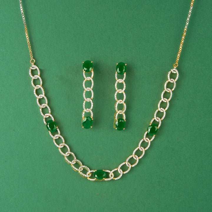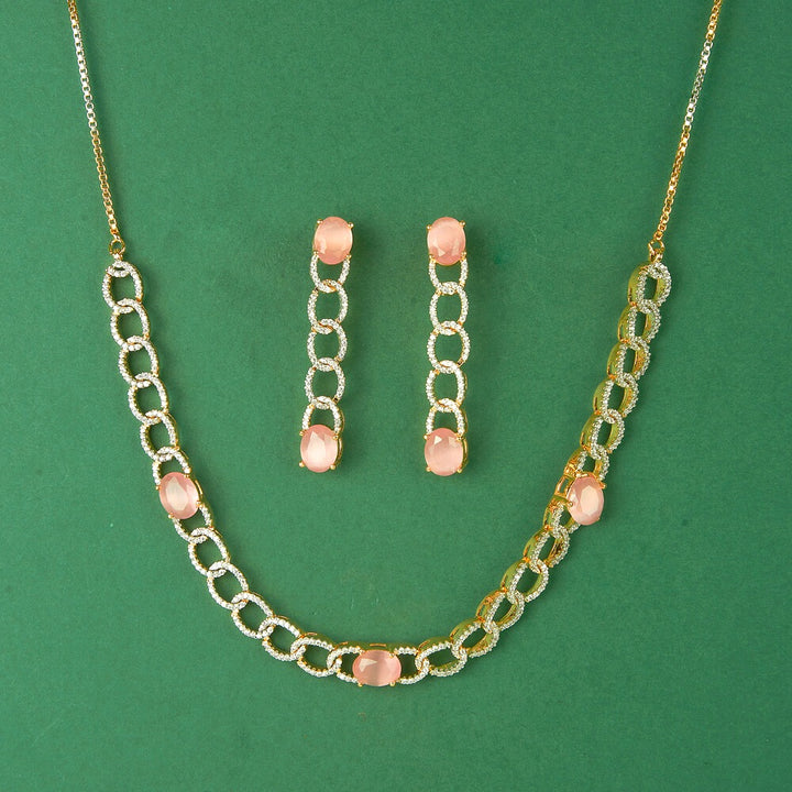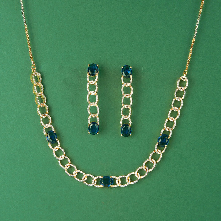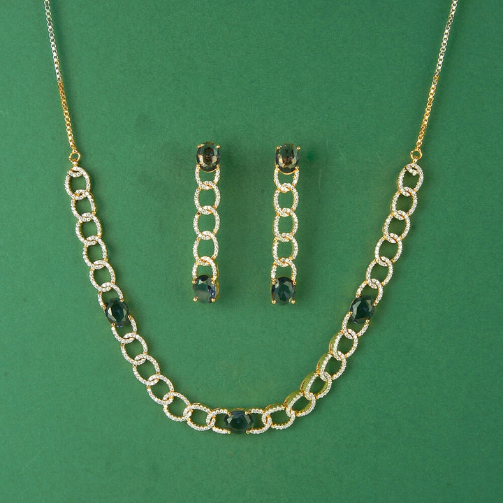 436339 Cubic Zirconia Classic Necklace Set With 2 Tone Plating