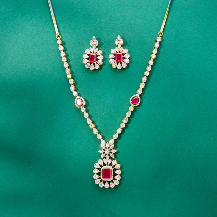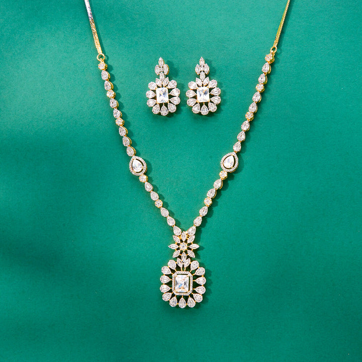 Weight: 46.0 Grams, Regular Size And Adjustable,Delicate Design,American Diamond Necklace Set