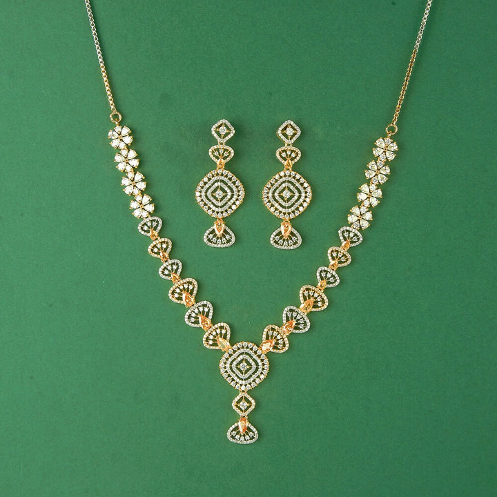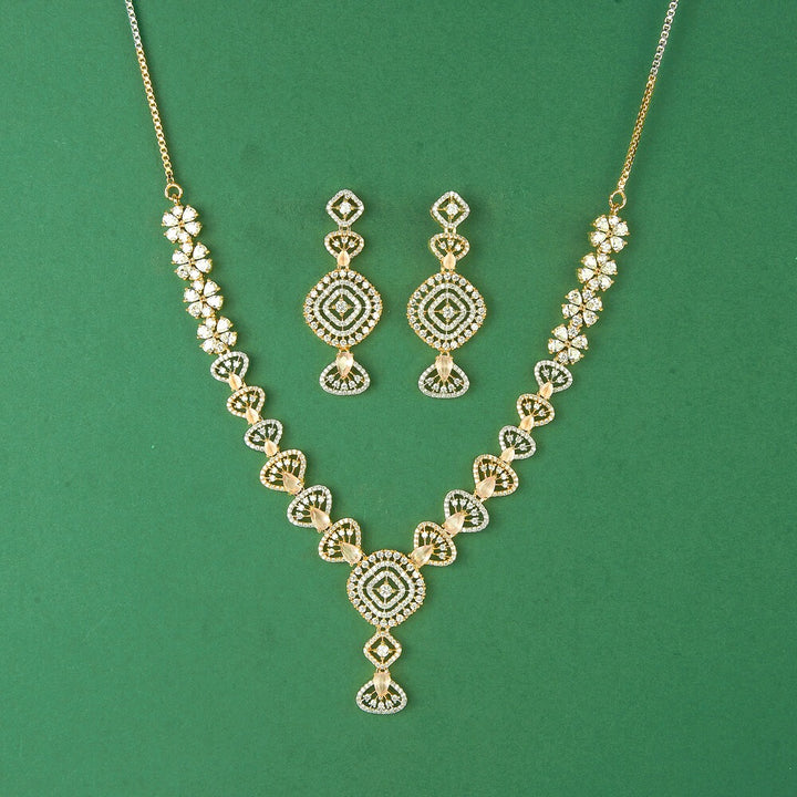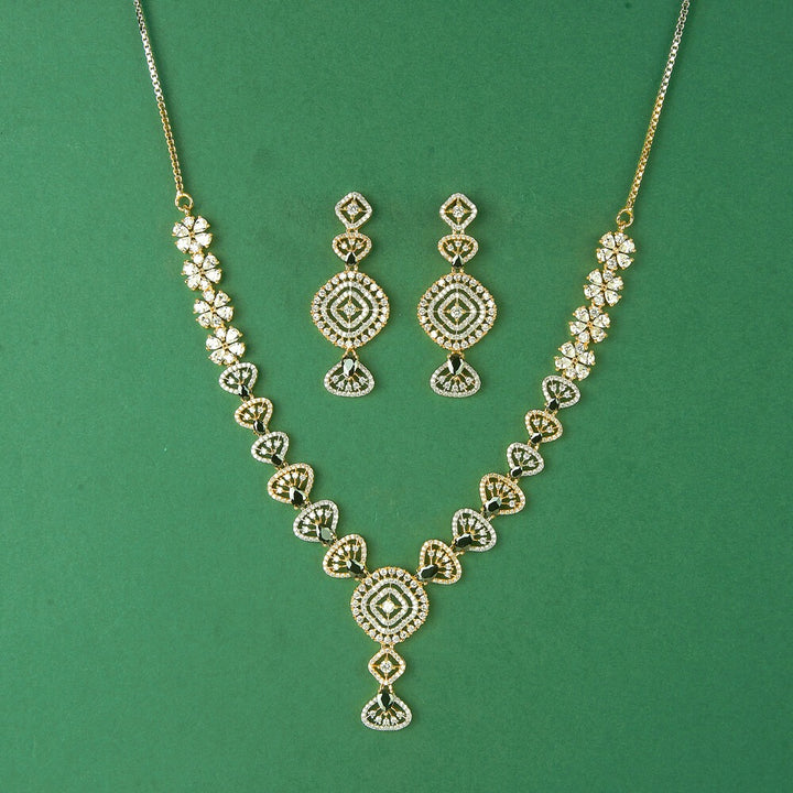 436618 Cubic Zirconia Classic Necklace Set With 2 Tone Plating