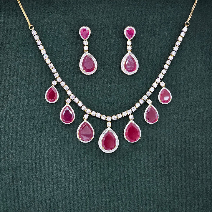 437505 Cubic Zirconia Classic Necklace Set With 2 Tone Plating