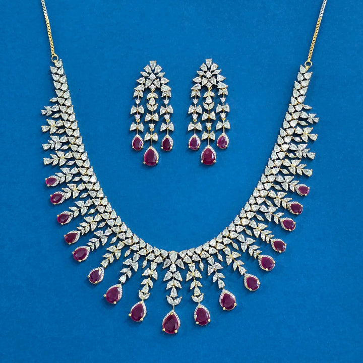 439462 Cubic Zirconia Classic Necklace Set With 2 Tone Plating