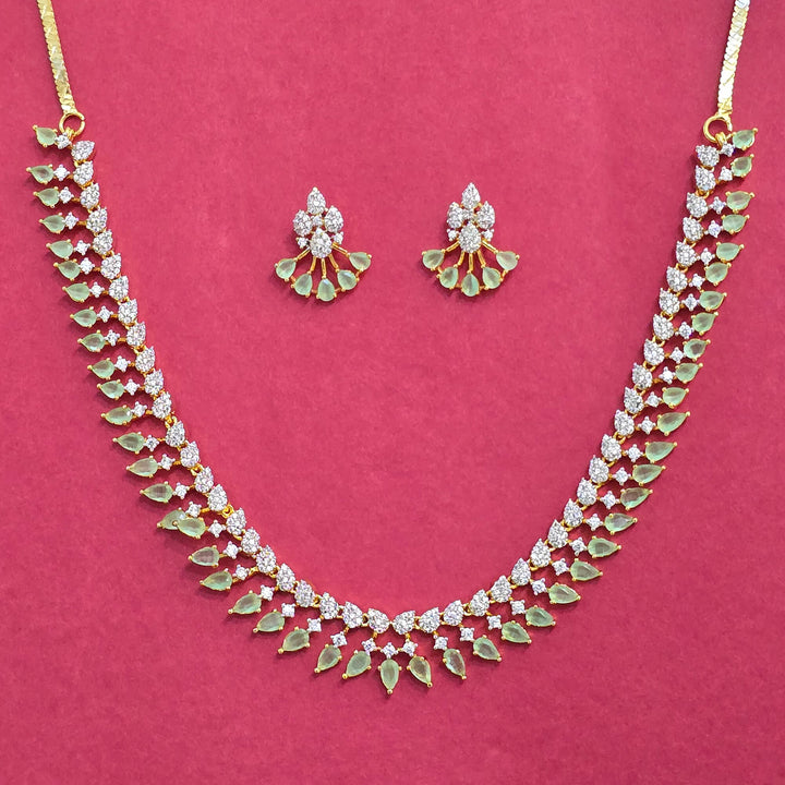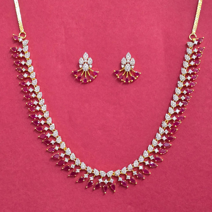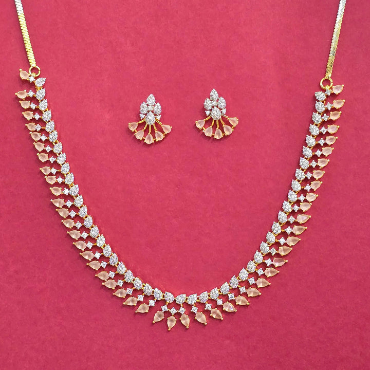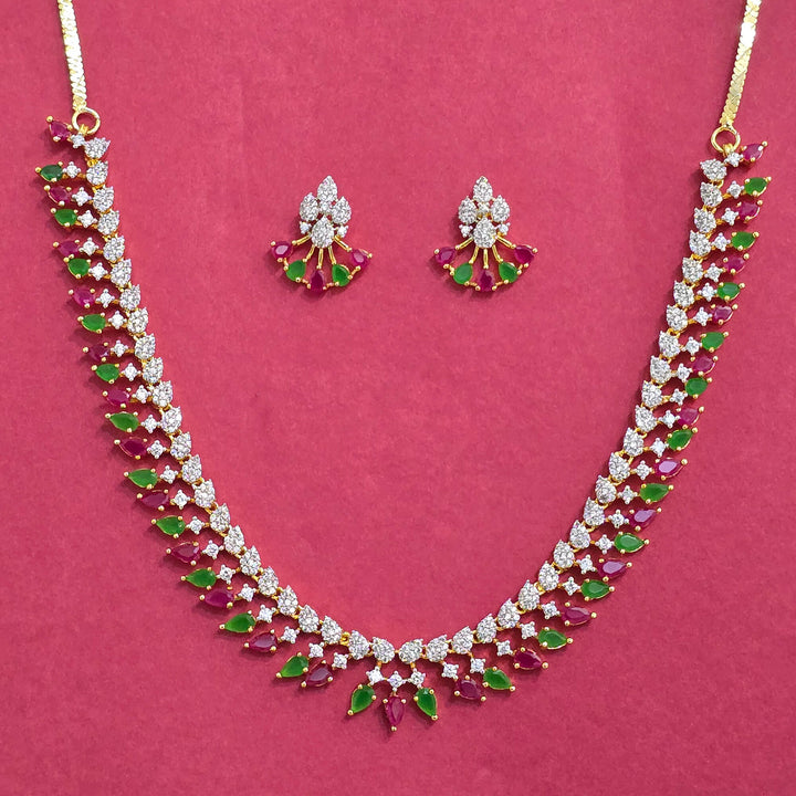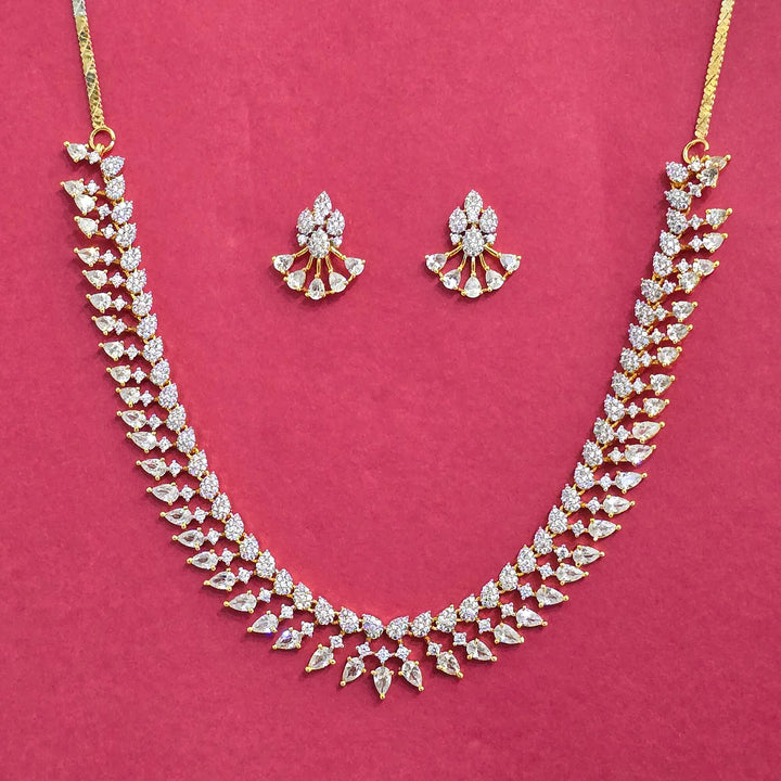 Weight: 35.0 Grams, Earring Height = 20 mm || Width = 17 mm,Regular Size And Adjustable,Latest Design,2 Tone Plating,American Diamond Necklace Set