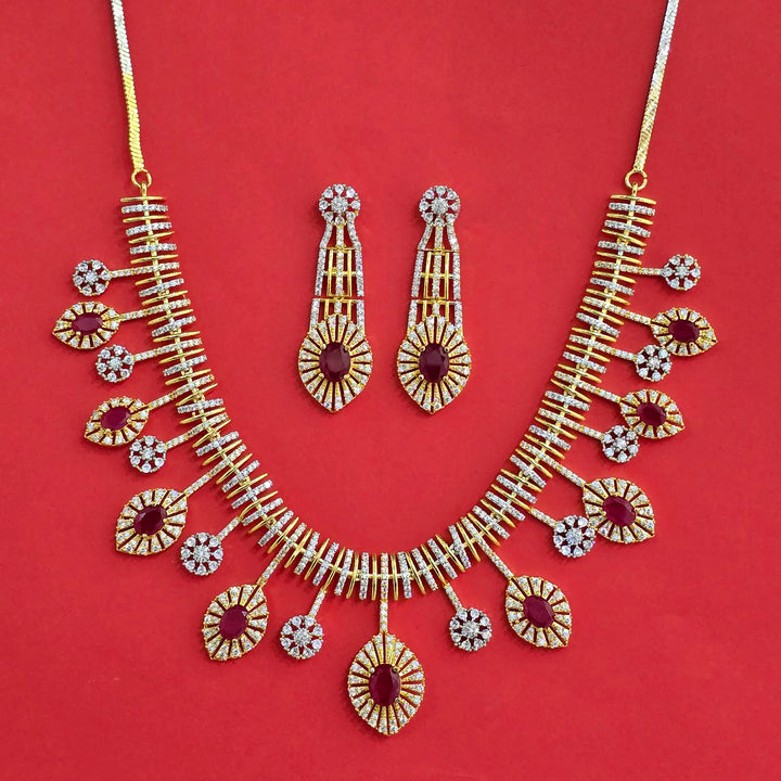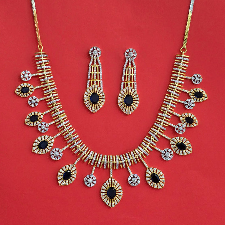 Weight: 70.0 Grams, Earring Height = 52 mm || Width = 16 mm,Regular Size 12 Inches With Adjustable Option,2 Tone Plating,American Diamond Necklace Set
