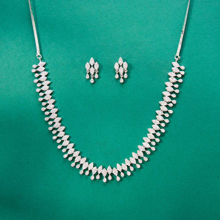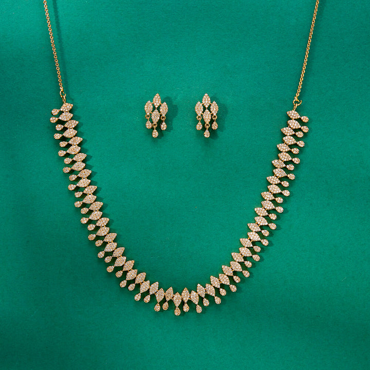 Weight: 32.0 Grams, Regular Size And Adjustable,Delicate Design,American Diamond Necklace Set