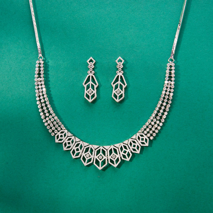 Weight: 37.0 Grams, Regular Size And Adjustable,Elegant Look,American Diamond Necklace Set